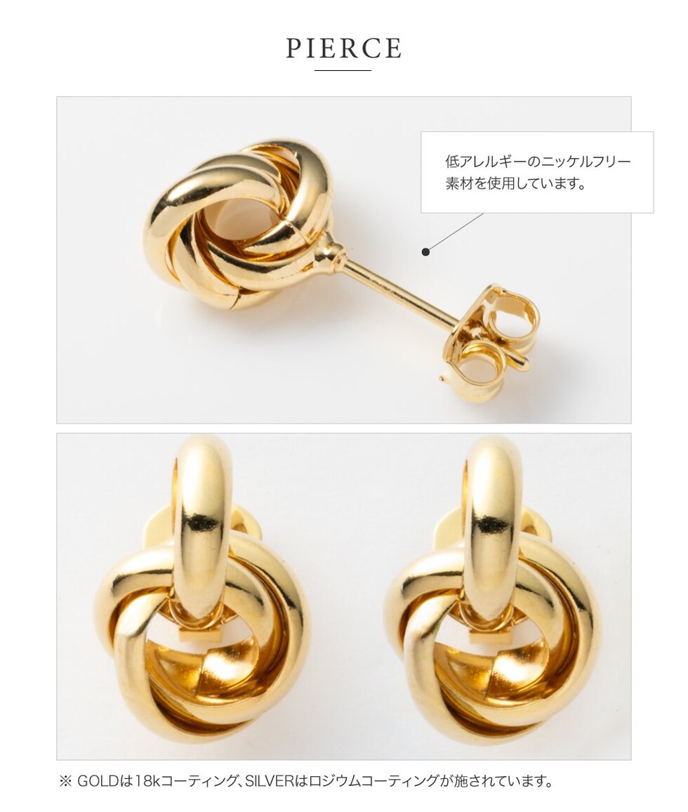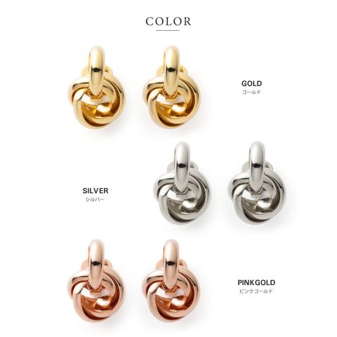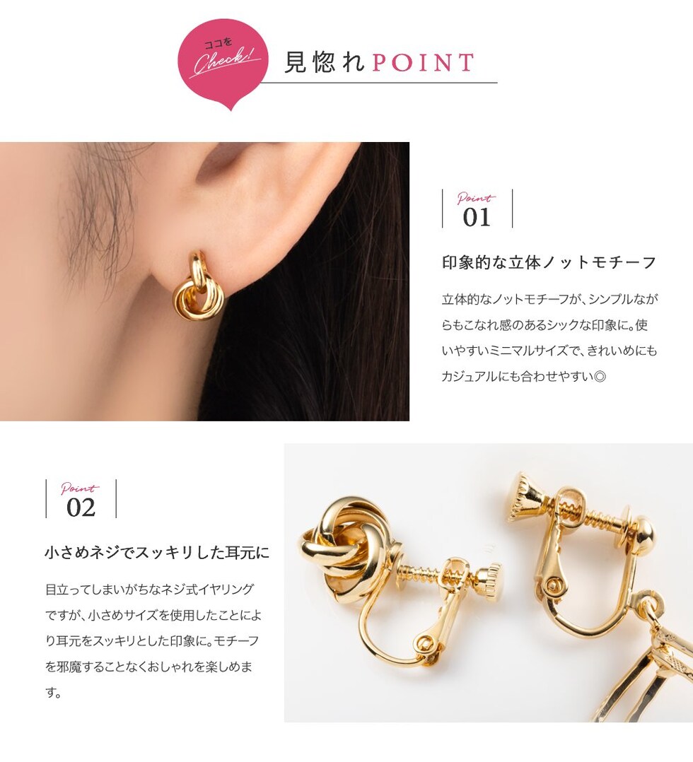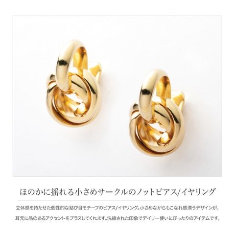 立体感を持たせた個性的な結び目モチーフのピアス/イヤリング。小さめながらもこなれ感漂うデザインが、耳元に品のあるアクセントをプラスしてくれます。洗練された印象でデイリー使いにぴったりのアイテムです。