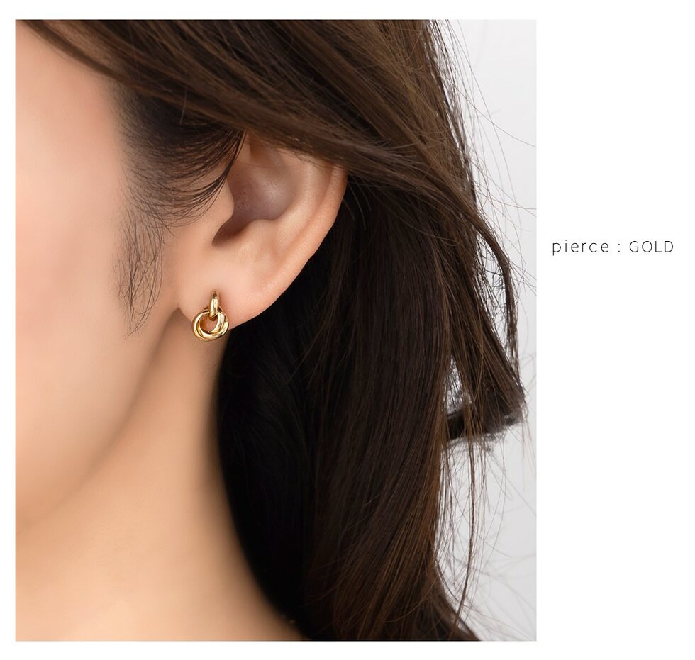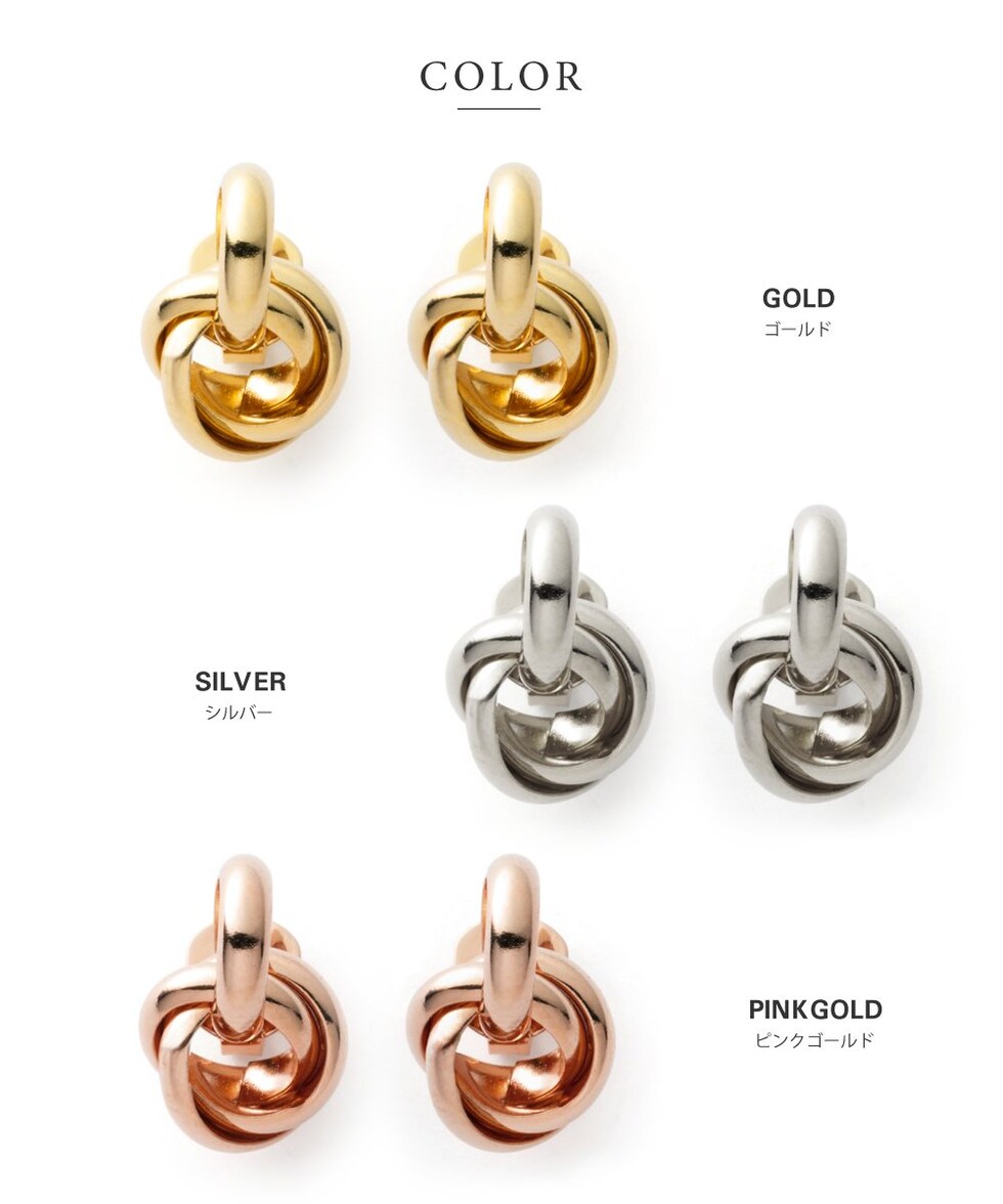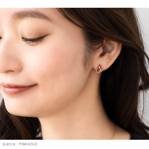 ピアス イヤリング 金属アレルギー ニッケルフリー レディース ネジ式 ノット サークル 多重 立体 小さめ cream dot ゆうパケット [ピンクゴールド_ピアス]