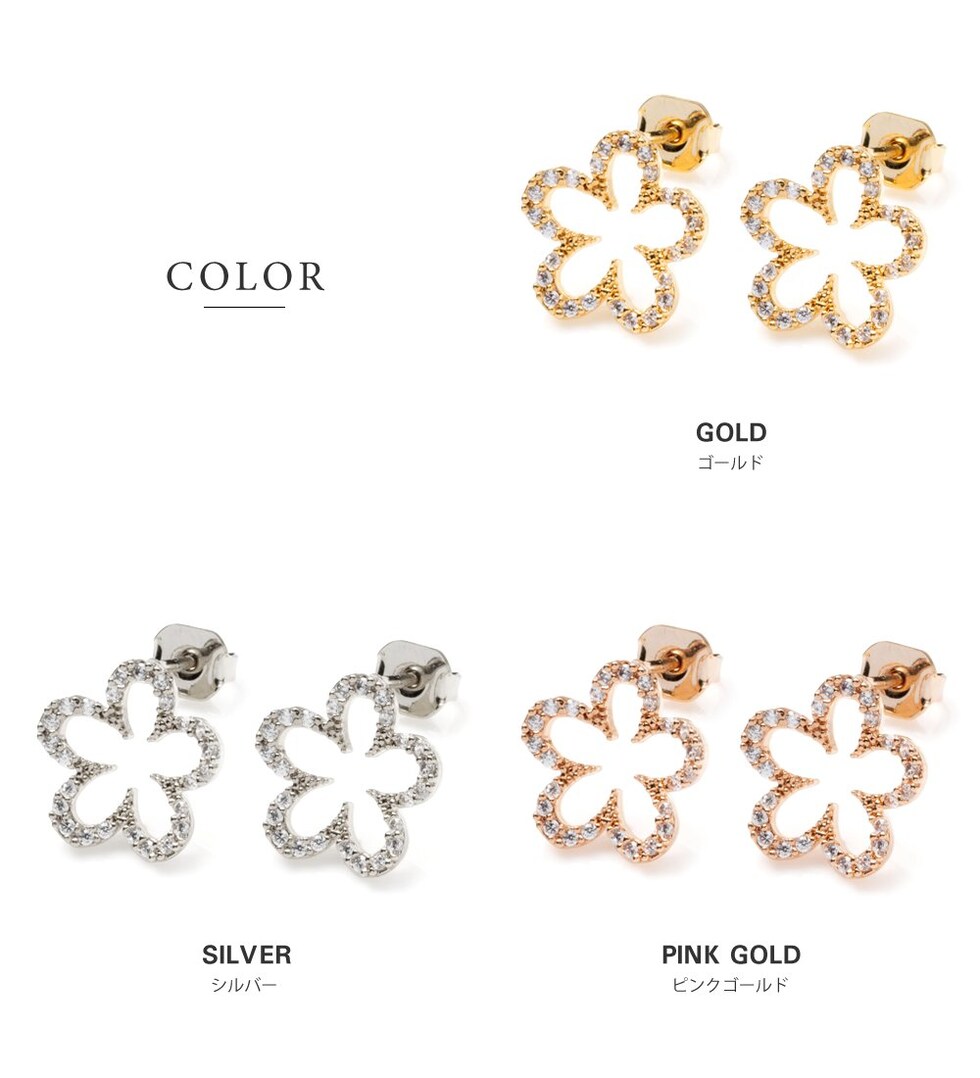 ピアス イヤリング 金属アレルギー ニッケルフリー レディース スタッド ビジュー フラワー ミル打ち cream dot ゆうパケット [ピンクゴールド_ピアス]