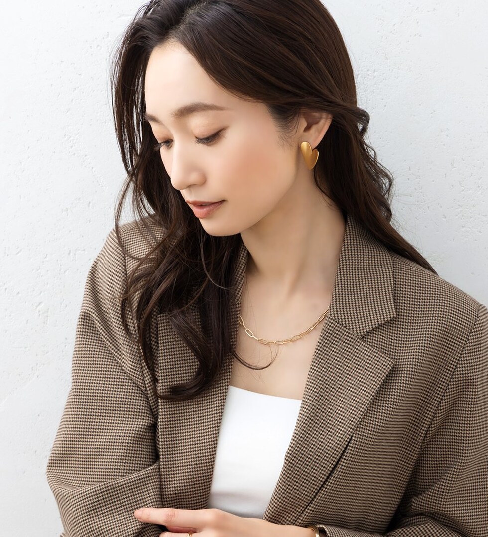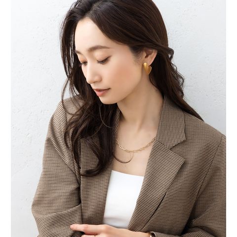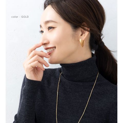 見た目より軽い着け心地で耳が痛くなる心配を軽減。さりげないアシンメトリーデザインで着用した時のシルエットも可愛い♪プレートが緩やかにカーブしているからぺったり感がなく、主張しすぎないのもポイント。