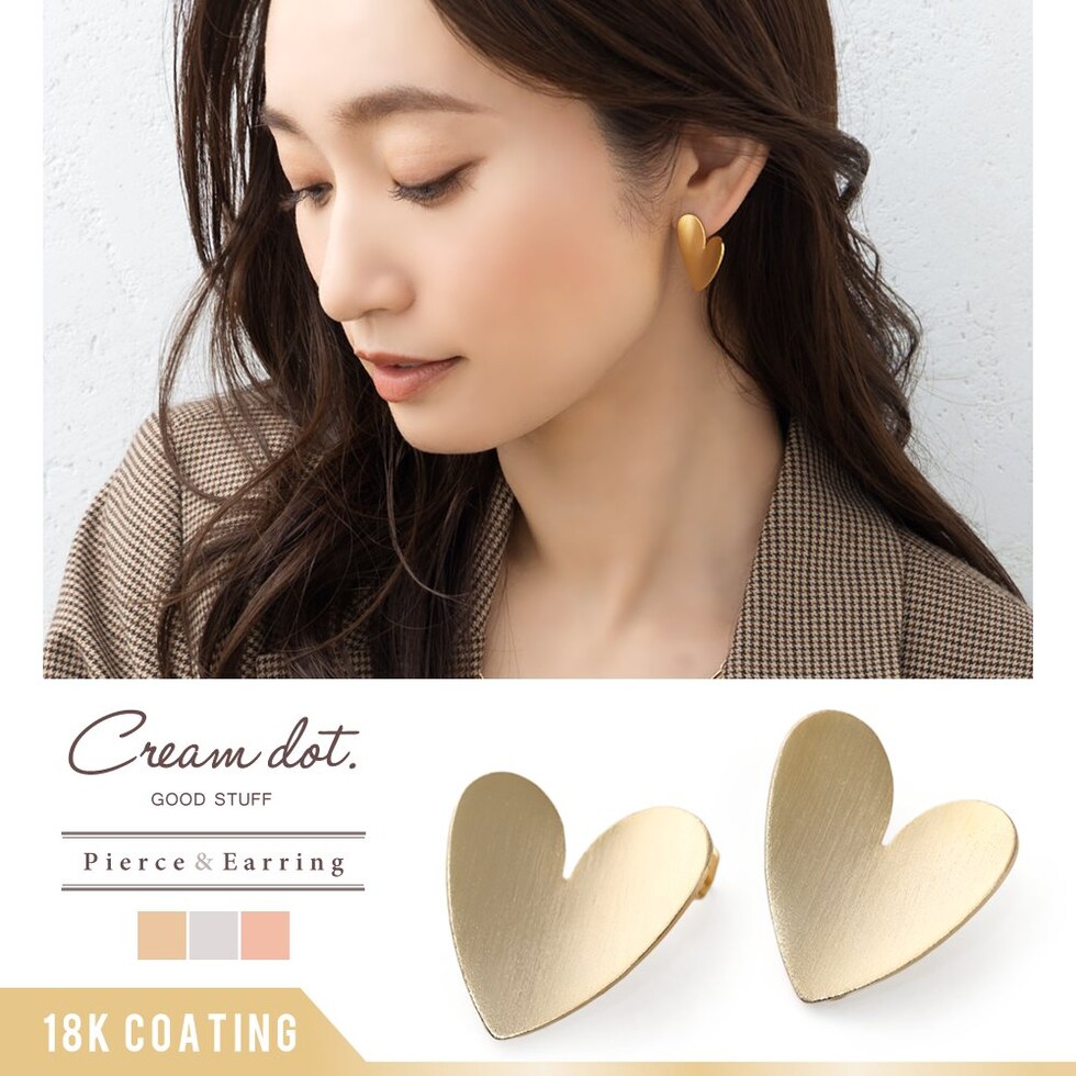 ピアス イヤリング 金属アレルギー ニッケルフリー レディース シリコンカバー ネジ式 大ぶり ハート セミマット ヘアライン加工 cream dot ゆうパケット [ゴールド_ピアス]