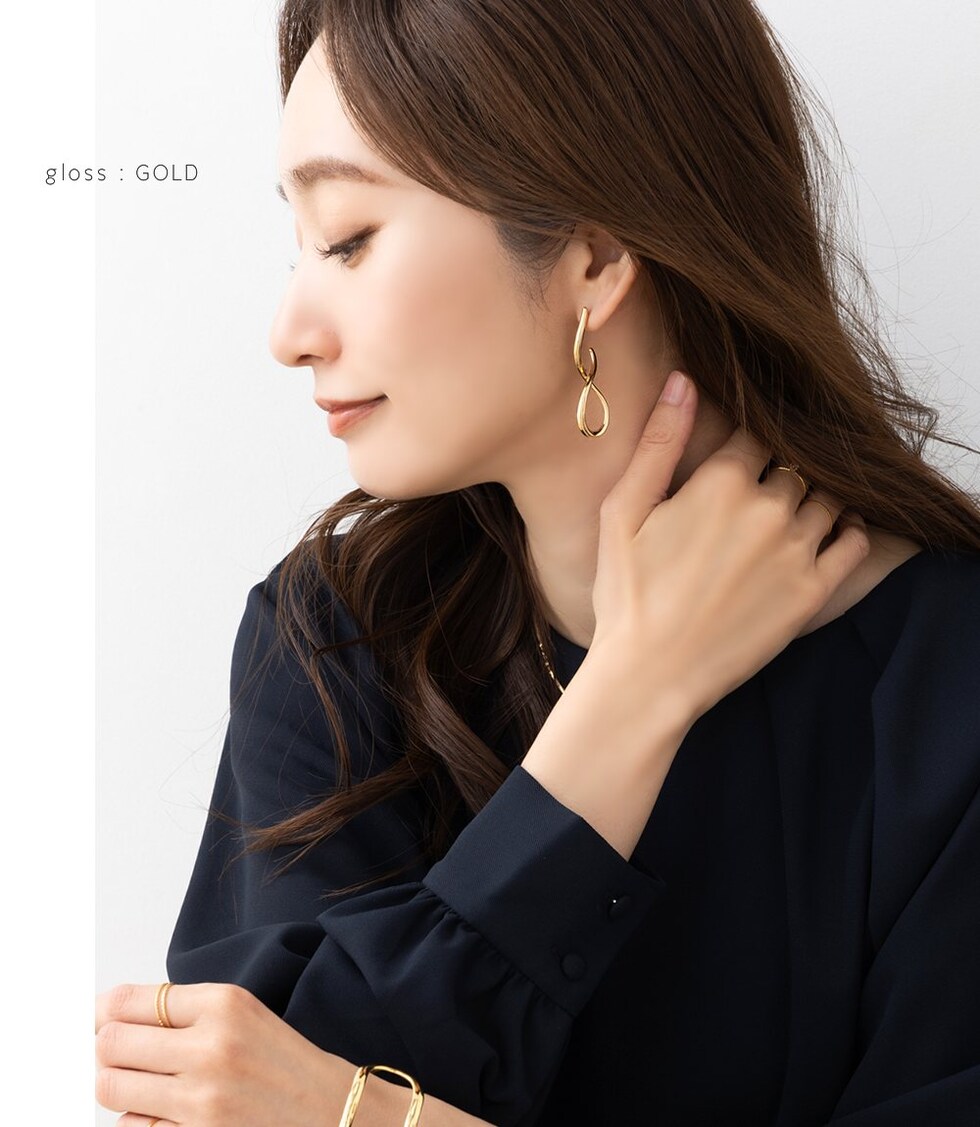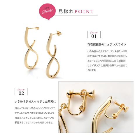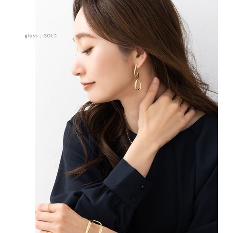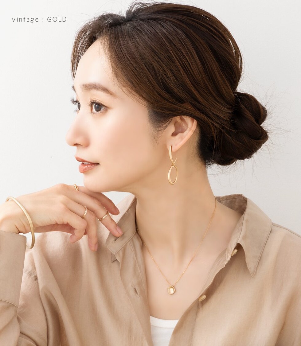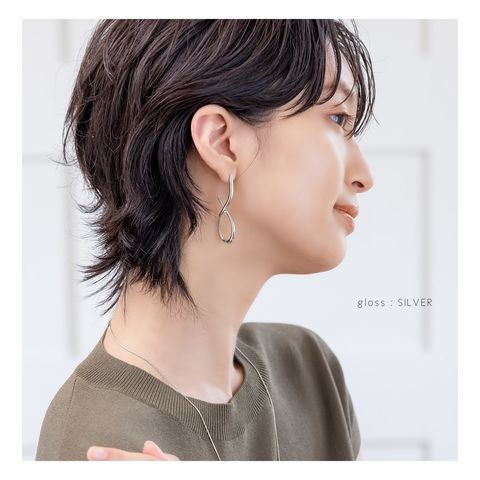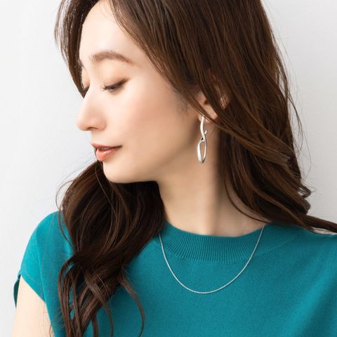 目立ってしまいがちなネジ式イヤリングですが、小さめサイズを使用したことにより耳元をスッキリとした印象に。モチーフを邪魔することなくおしゃれを楽しめます。