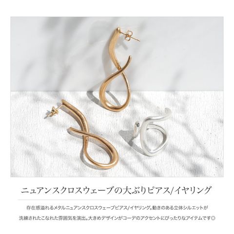 存在感溢れるメタルニュアンスクロスウェーブピアス/イヤリング。動きのある立体シルエットが洗練されたこなれた雰囲気を演出。大きめデザインがコーデのアクセントにぴったりなアイテムです◎