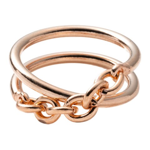 チェーンデザインのメタルクロスリング。角度によって表情を変えるチェーンモチーフが重厚感ある主役級アイテム。シンプルなリングと合わせて大人スタイルを楽しんで◎