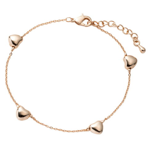 ぷっくりメタルハートのステーションブレスレット。モチーフを等間隔に配置した人気のステーションデザイン。程よいサイズ感のぷっくりとしたメタルハートが大人っぽさも忘れないイチオシアイテム◎