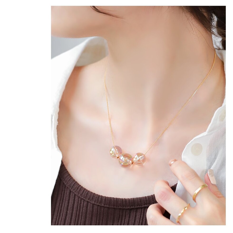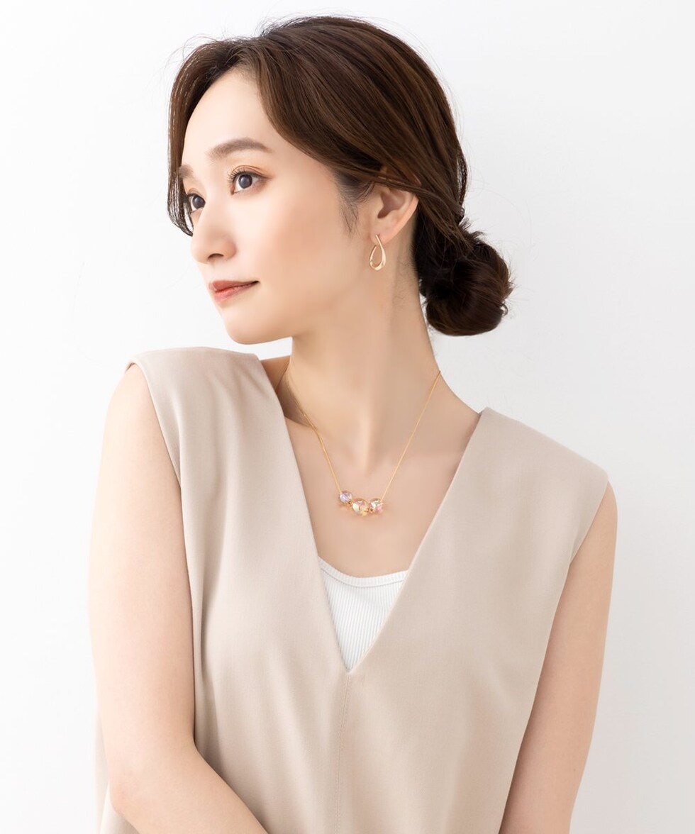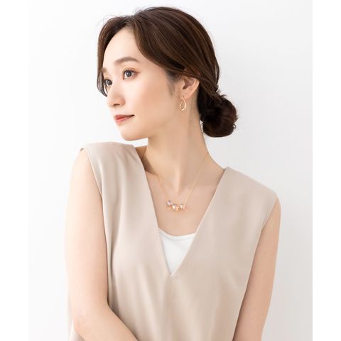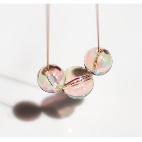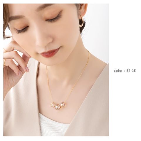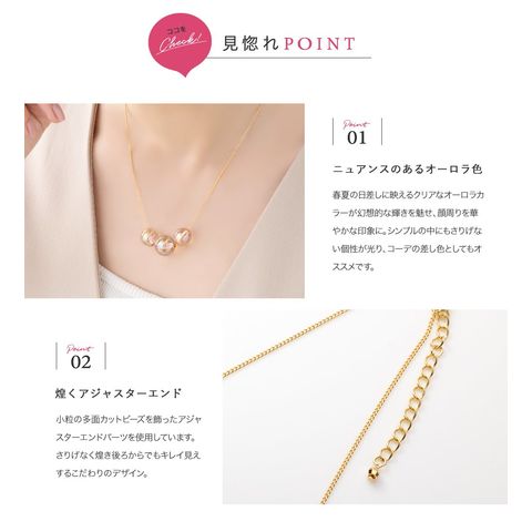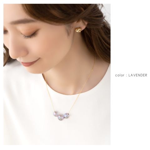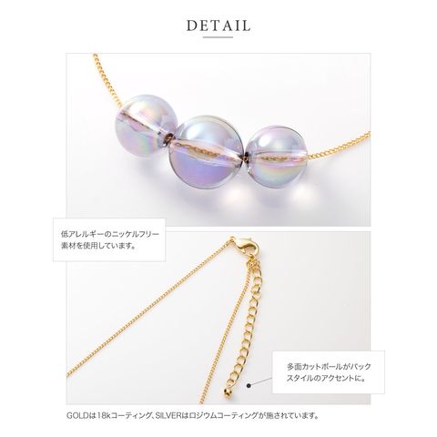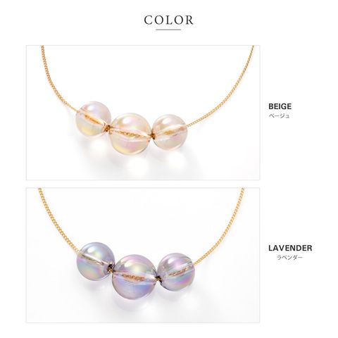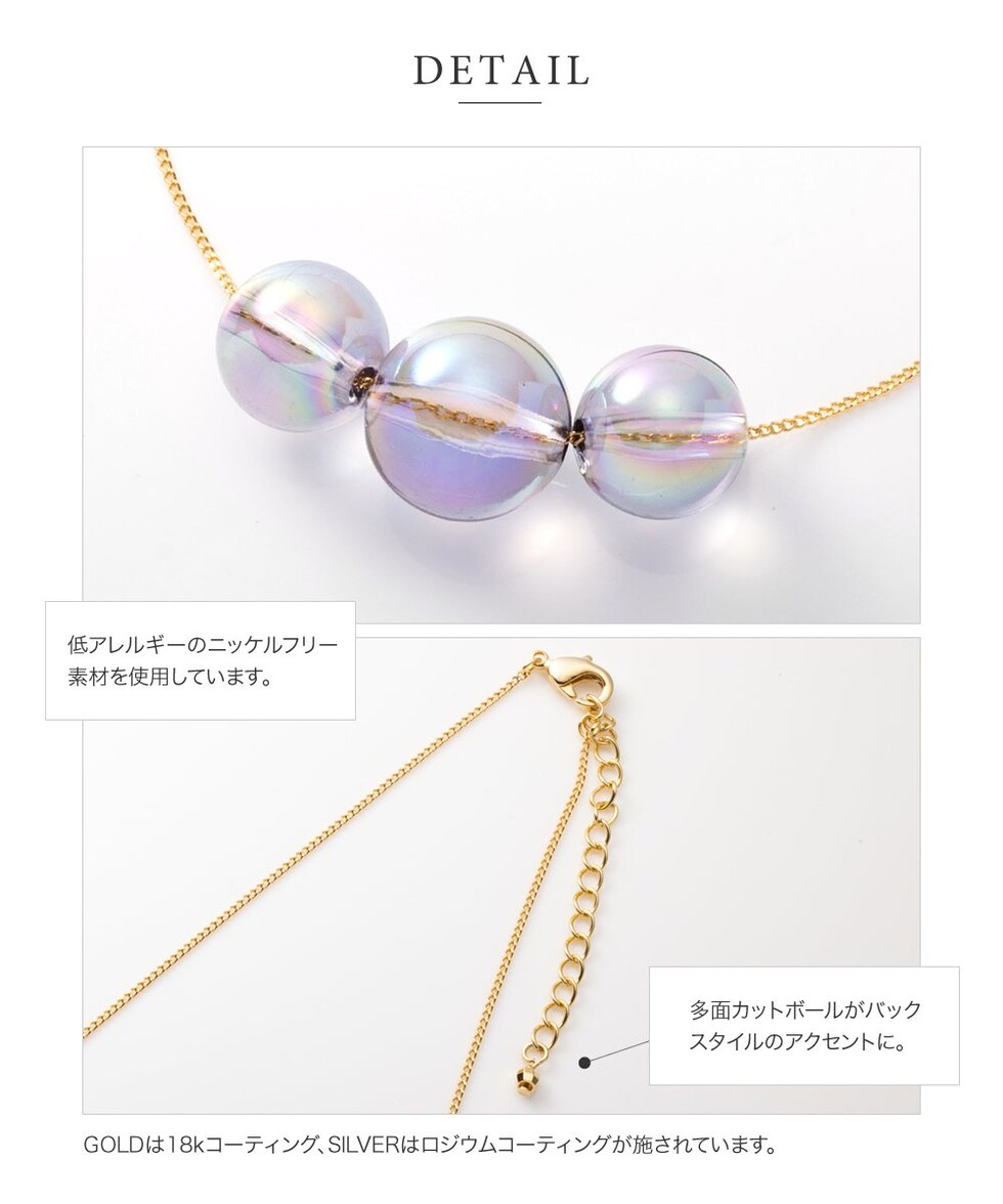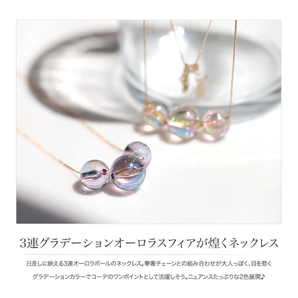 日差しに映える3連オーロラボールのネックレス。華奢チェーンとの組み合わせが大人っぽく、目を惹くグラデーションカラーでコーデのワンポイントとして活躍しそう。ニュアンスたっぷりな2色展開♪