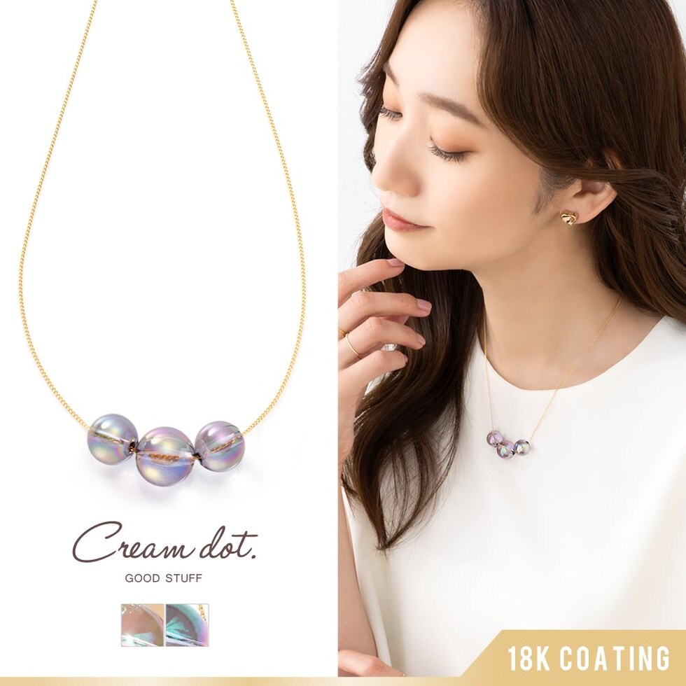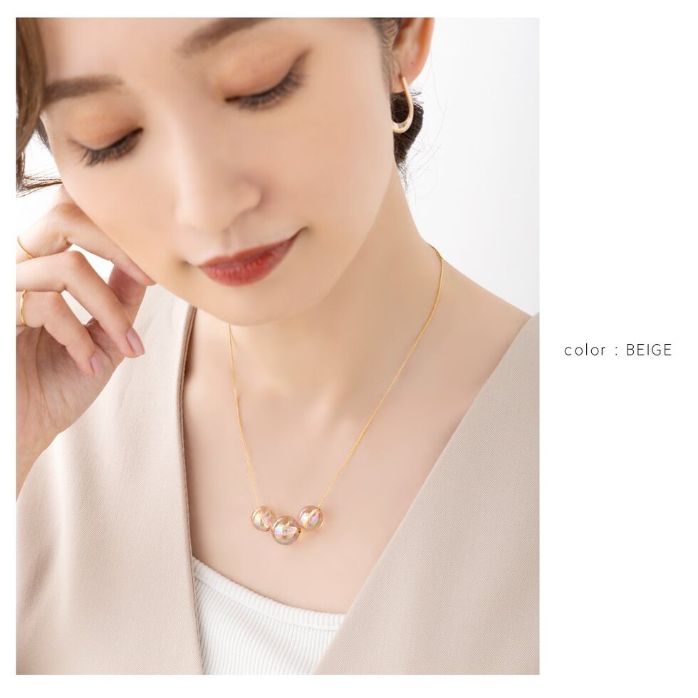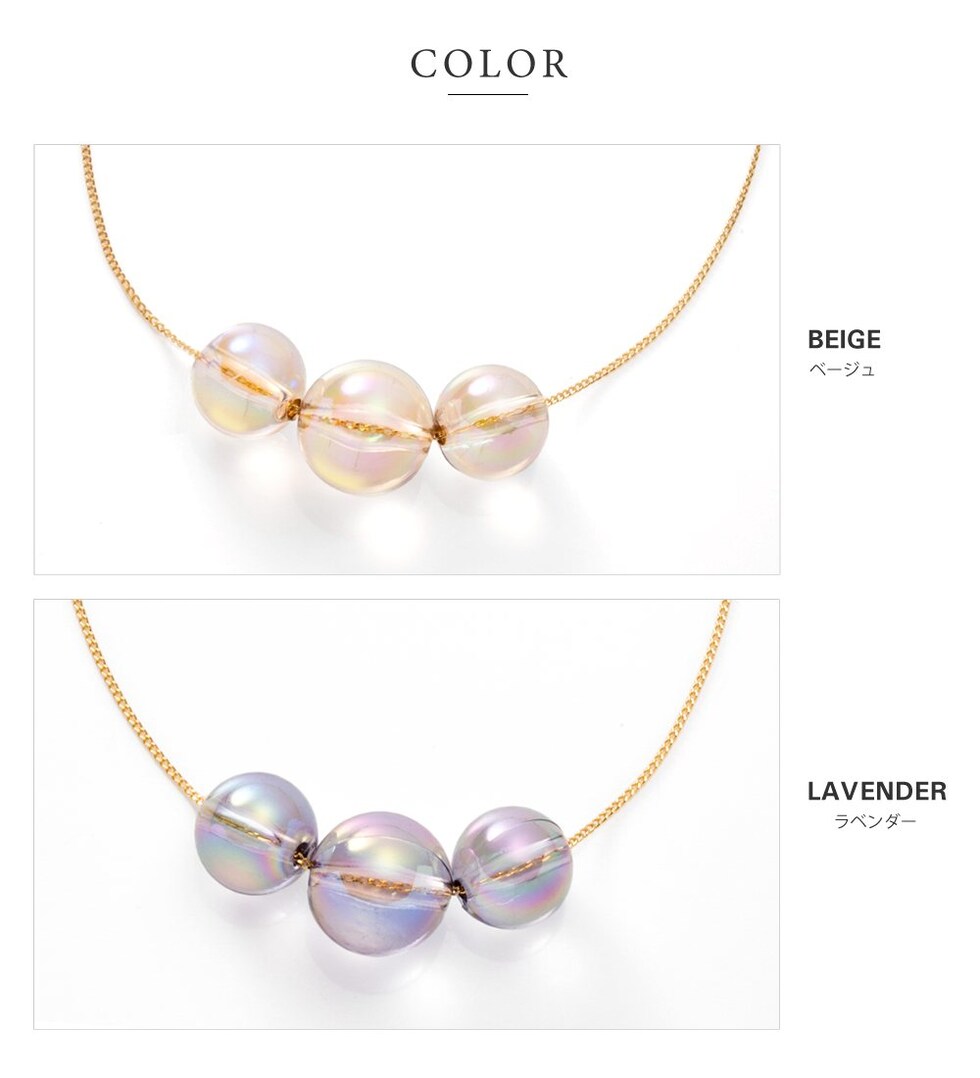ネックレス 金属アレルギー ニッケルフリー レディース ショート チェーン オーロラカラー ボール スフィア 3連 ラベンダー cream dot ゆうパケット [ベージュ_ワンサイズ]