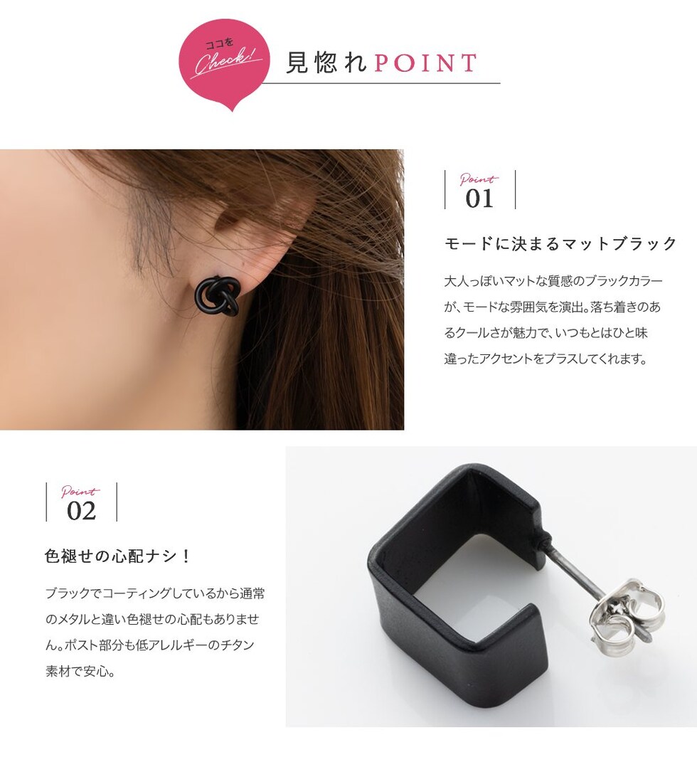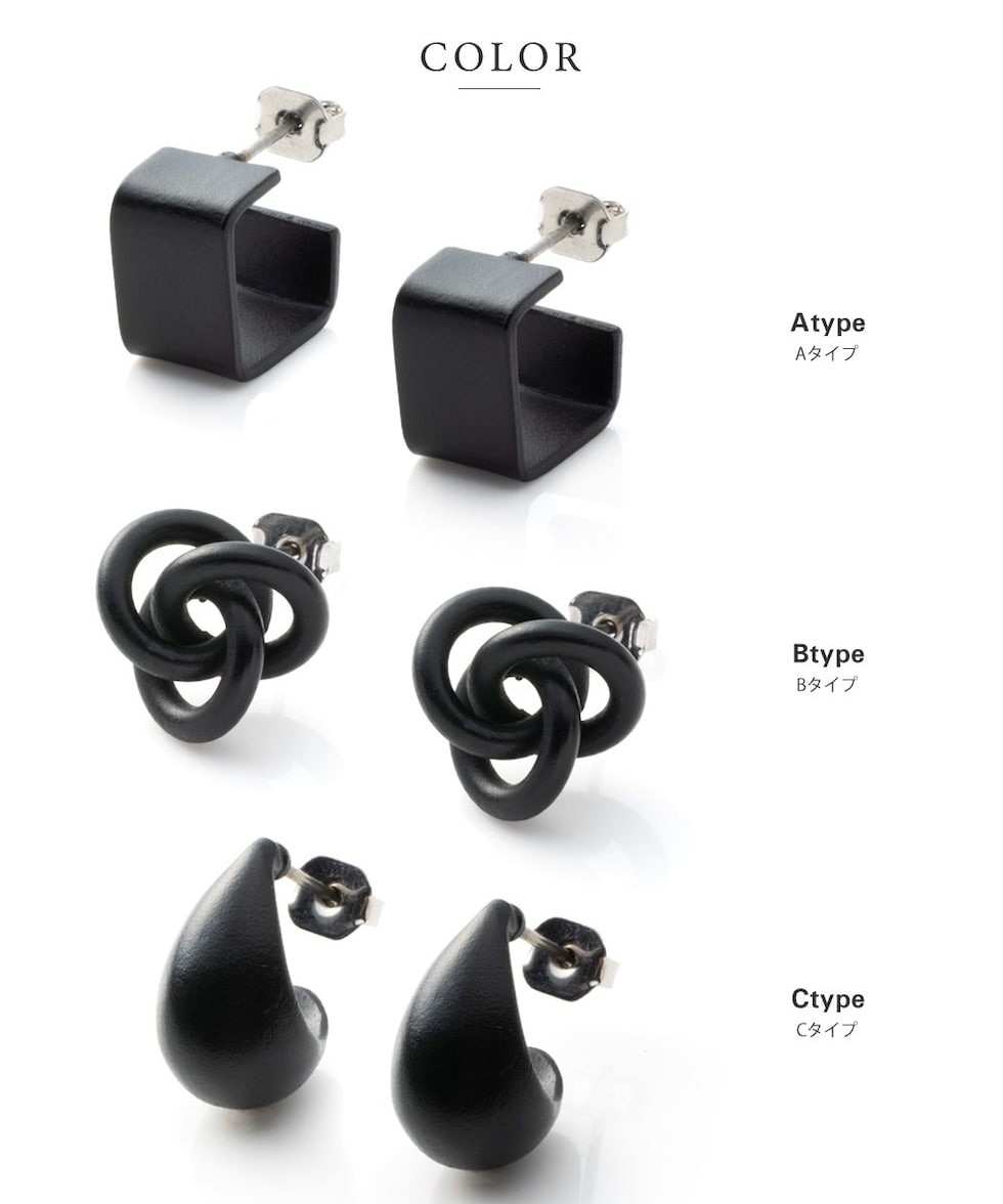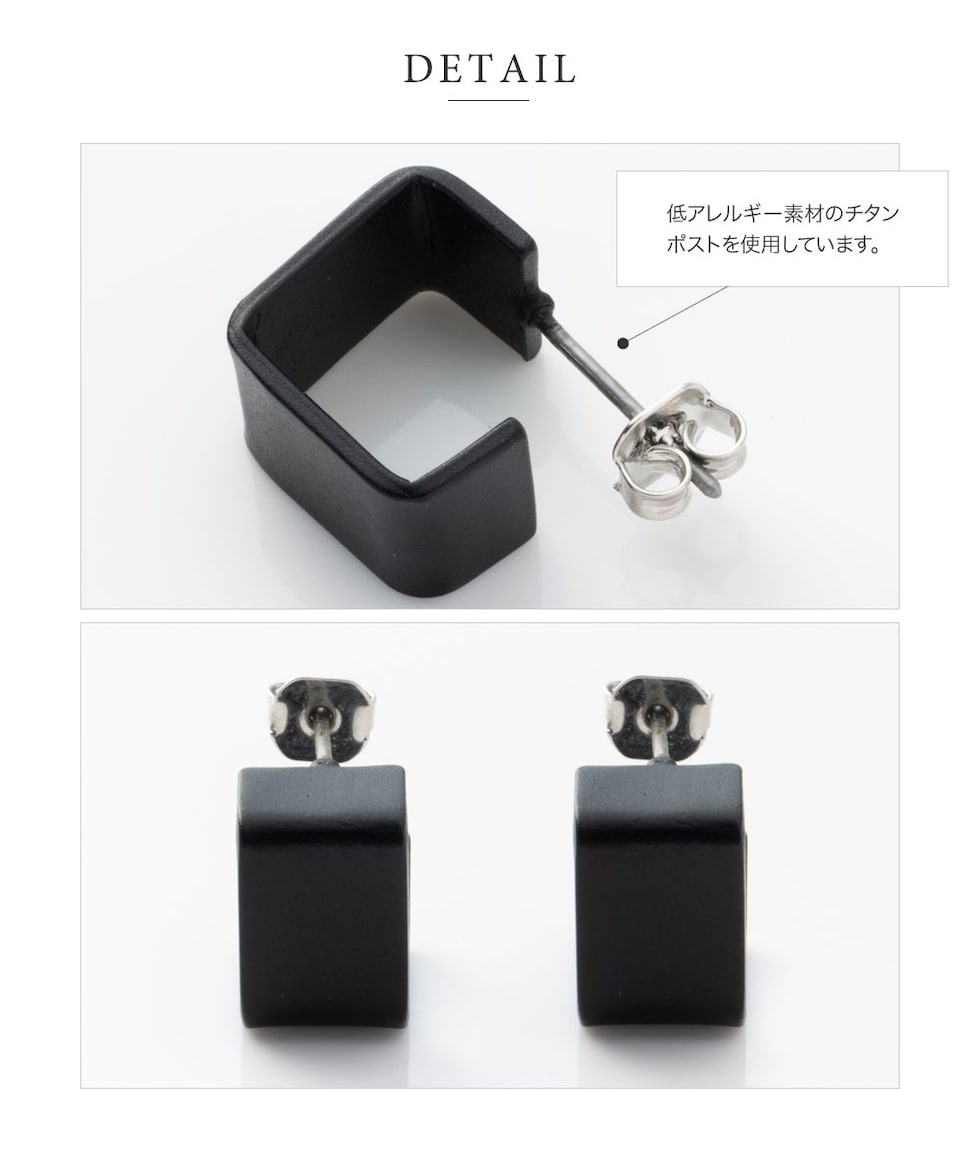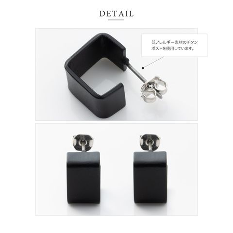 ブラックでコーティングしているから通常のメタルと違い色褪せの心配もありません。ポスト部分も低アレルギーのチタン素材で安心。