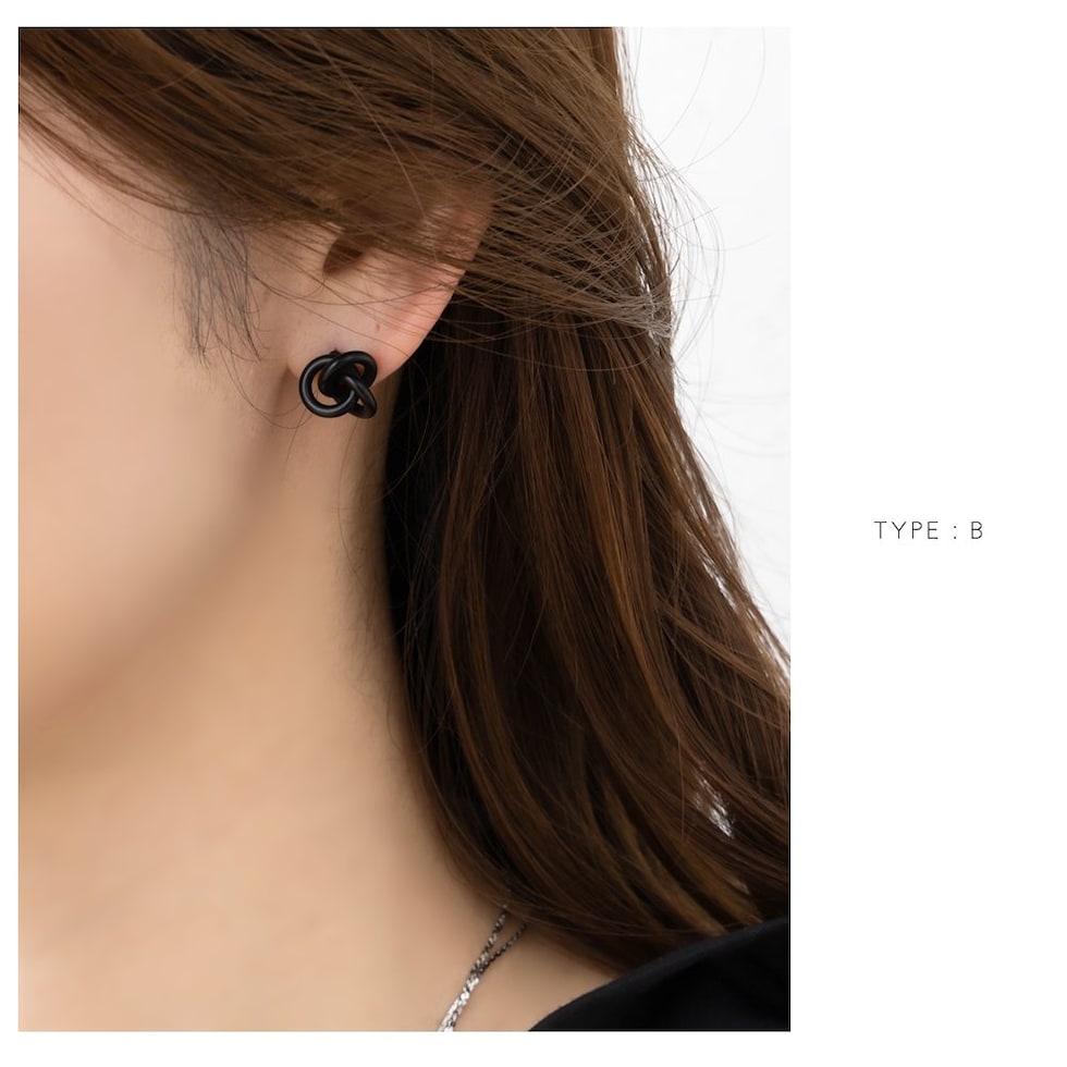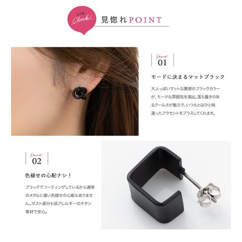 ピアス 金属アレルギー ニッケルフリー レディース 3タイプ ブラックプレーティング ブラックコーティング クール ノット スクエア ドロップ マット cream dot ゆうパケット [Aタイプ_ピアス]