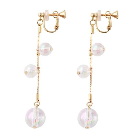 イヤリング ピアス 金属アレルギー ニッケルフリー レディース シリコンカバー ネジ式 大ぶり 揺れる オーロラ ボール スフィア 3連 ロング cream dot ゆうパケット [オーロラゴールド_イヤリング]