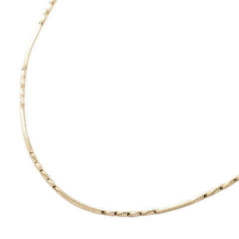 ツイストデザインのアクセントを加えたしなやかなスネークチェーンが首元で繊細に煌めき、大人の抜け感を演出。シンプルだけど単調に見えない洗練された一品です。