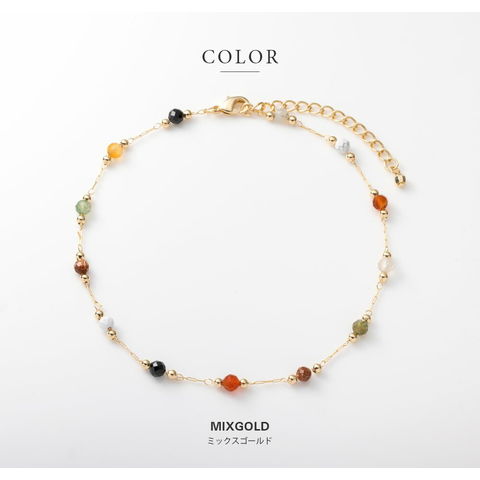 アンクレット 金属アレルギー ニッケルフリー レディース アンクレット 天然石 ビジュー メタルボール マルチカラー cream dot ゆうパケット [ミックスゴールド_ワンサイズ]