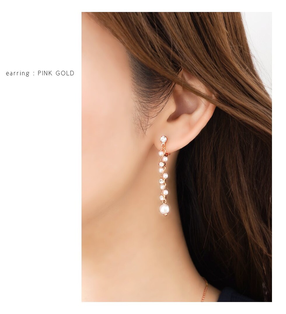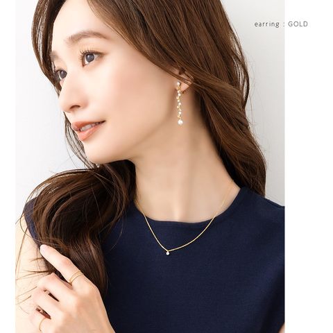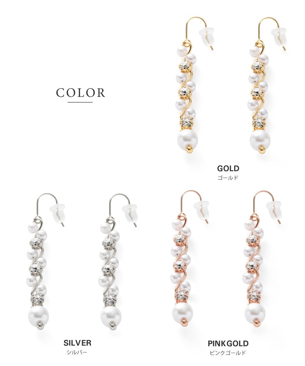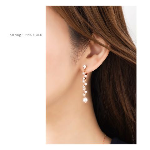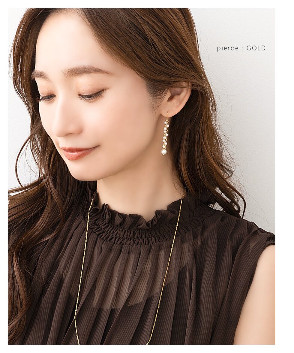 華奢ウェーブラインにパール、ビジューをあしらったラインピアス/イヤリング。繊細な煌めきと、揺れるデザインが視線を惹きつけ上品で華やかな印象に。デイリーから、華やかな場まで幅広く活躍してくれるアイテムです。