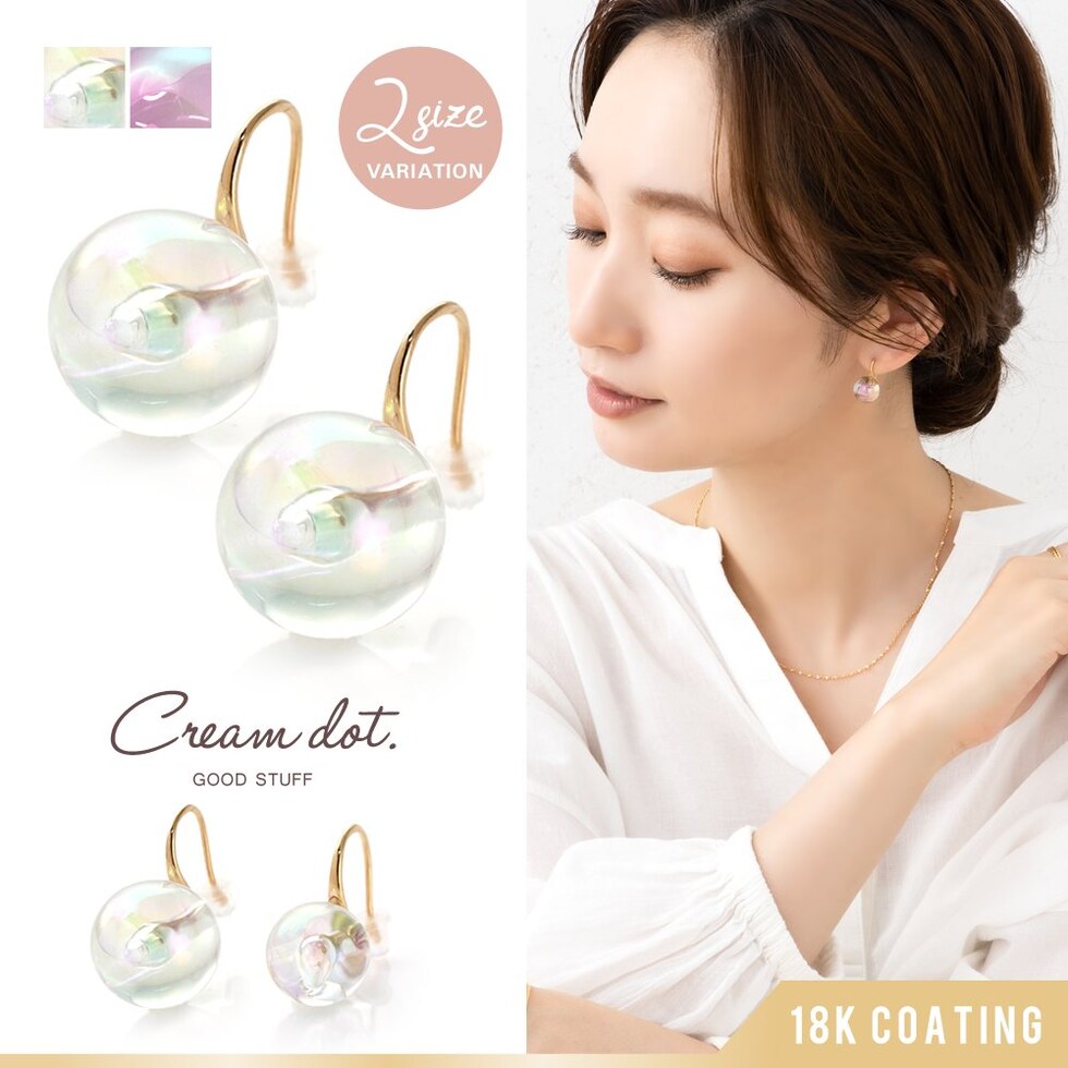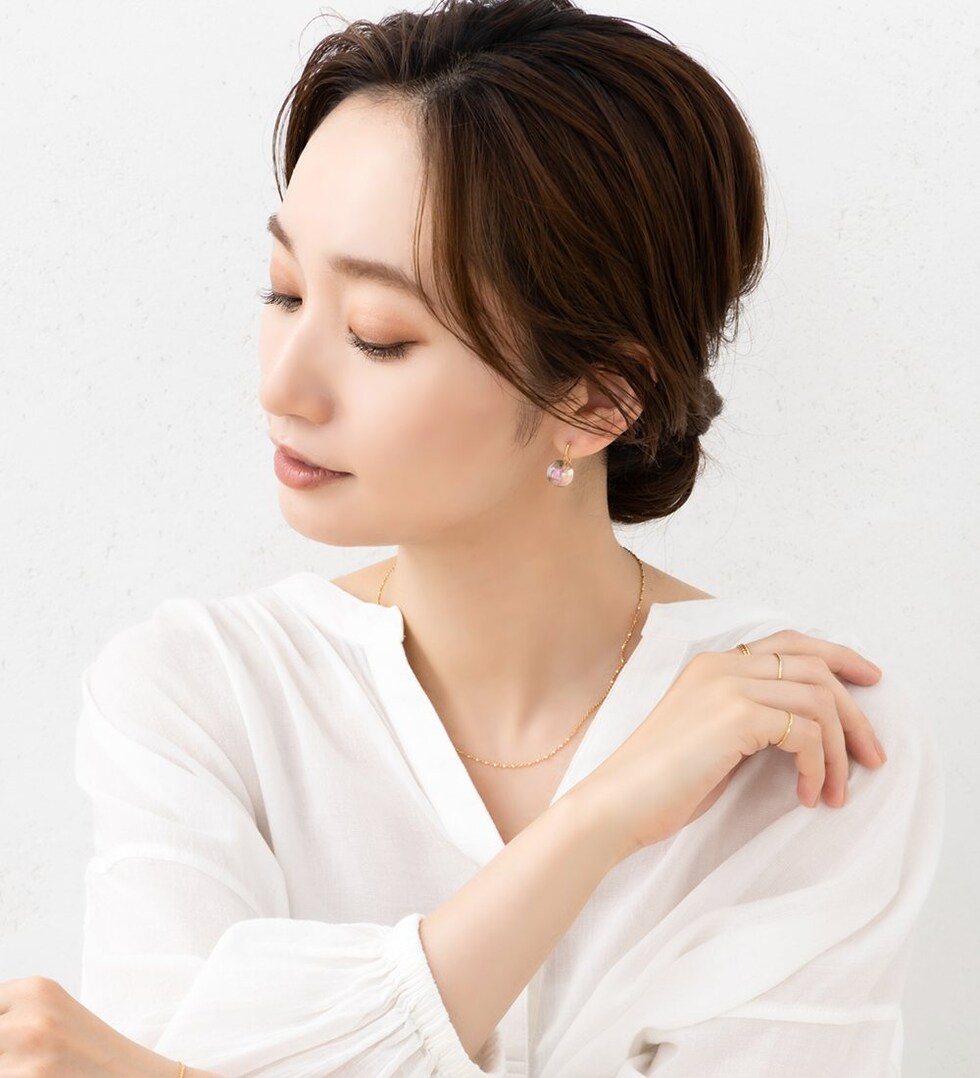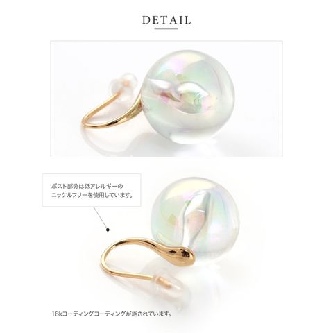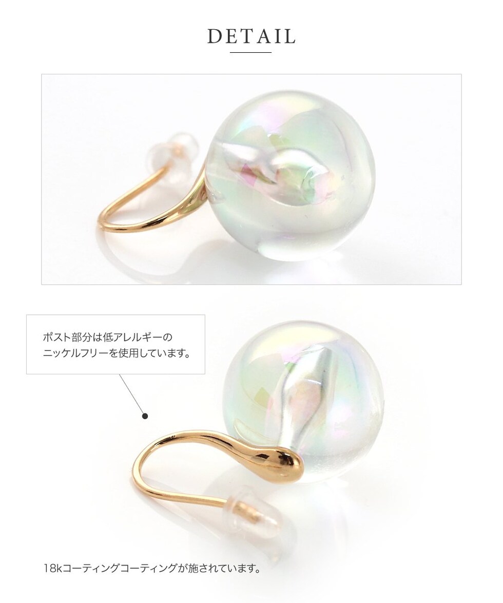 春夏の日差しに映えるクリアなオーロラカラーが幻想的な輝きを魅せ、耳元を華やかな印象に。シンプルの中にもさりげない個性が光り、コーデの差し色としてもオススメです。