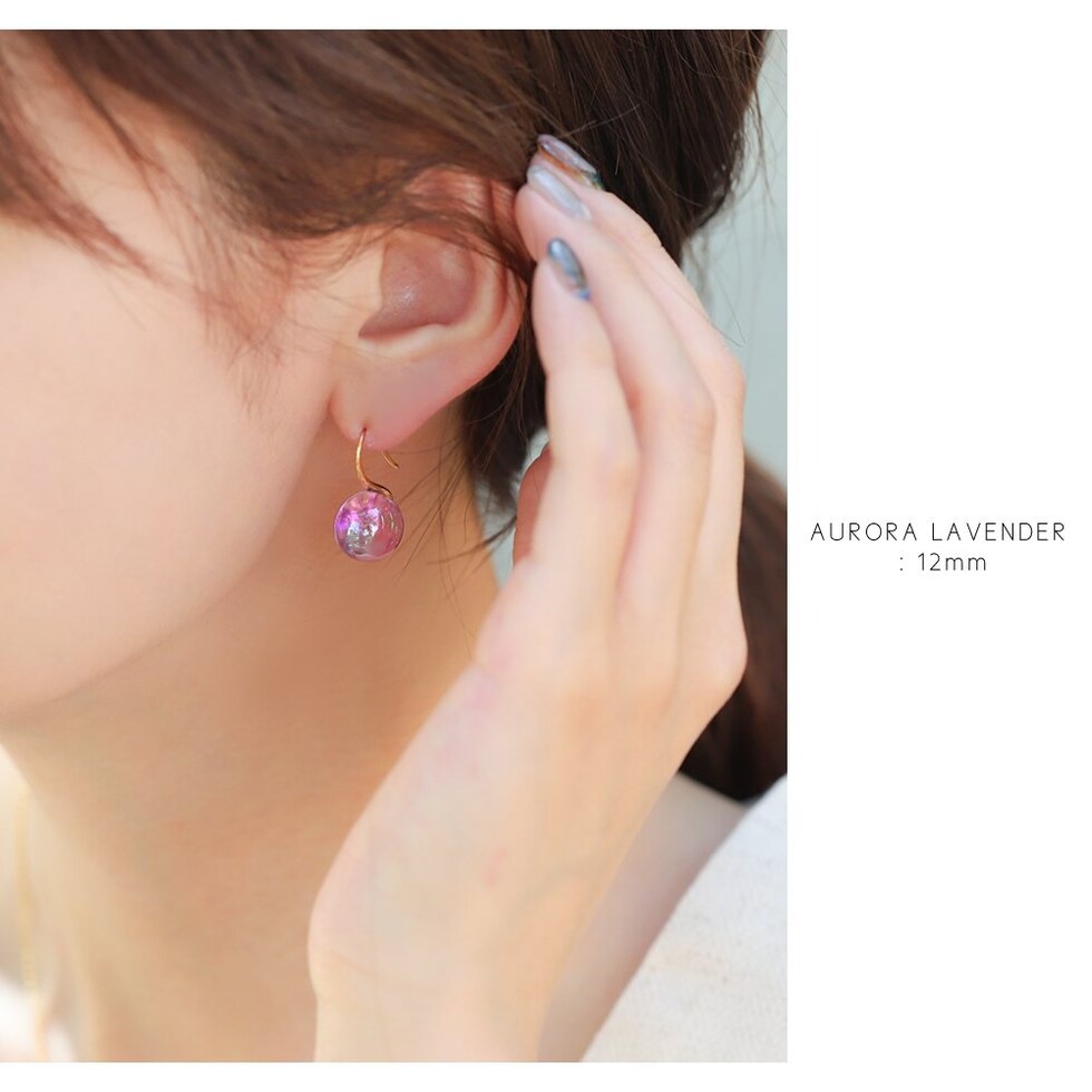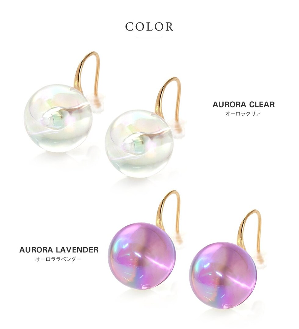 ピアス 金属アレルギー ニッケルフリー レディース フック 大ぶり オーロラ ボール スフィア 玉 丸 2サイズ 12mm 16mm cream dot ゆうパケット [オーロララベンダー_16mm]