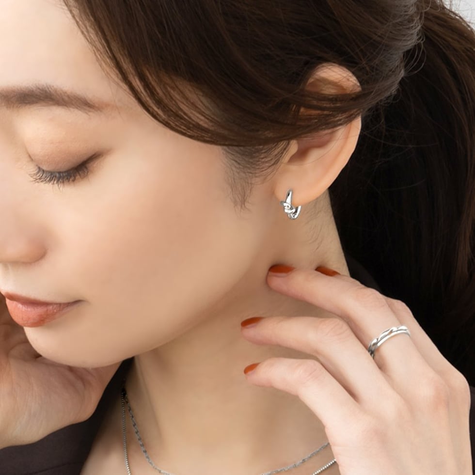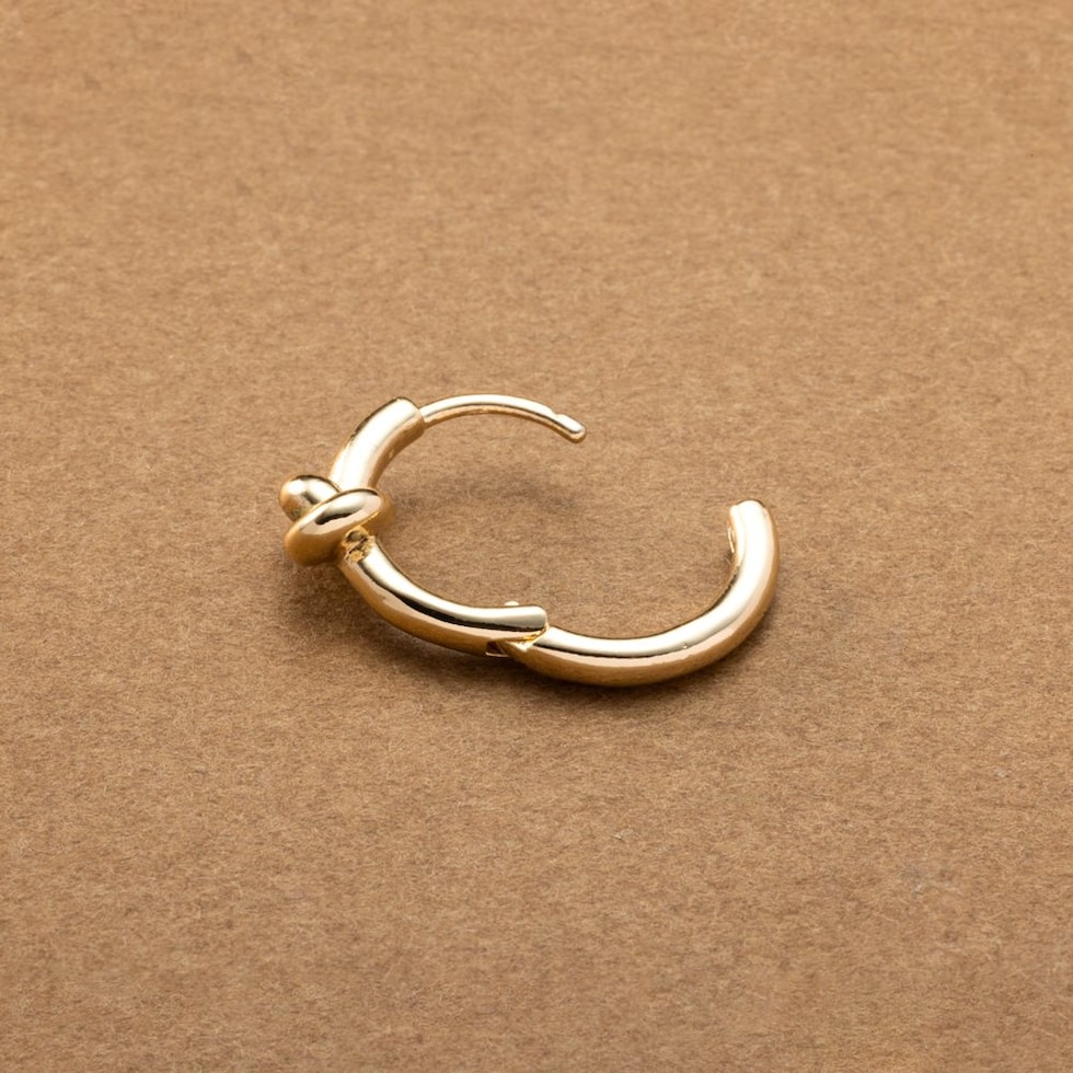 小さな結び目デザインが大人可愛いキャッチレスフープピアス。シンプルなラインとさりげなく個性的なモチーフが大人コーデにぴったりなアイテムです。ミニマルなサイズ感と着脱しやすいワンタッチでデイリーに活躍しそう◎錆びにくく傷に強いステンレス製で、長時間の着用も安心の低アレルギー素材です。