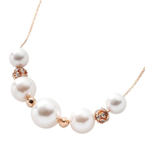 ネックレス 金属アレルギー ニッケルフリー レディース ショート チェーン ビジュー ラインストーン パール ロンデル 入園式 卒園式 cream dot ゆうパケット [ピンクゴールド_ワンサイズ]