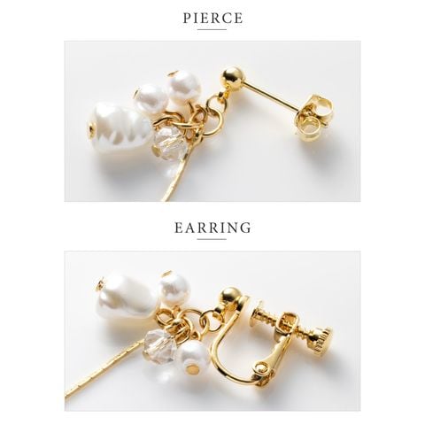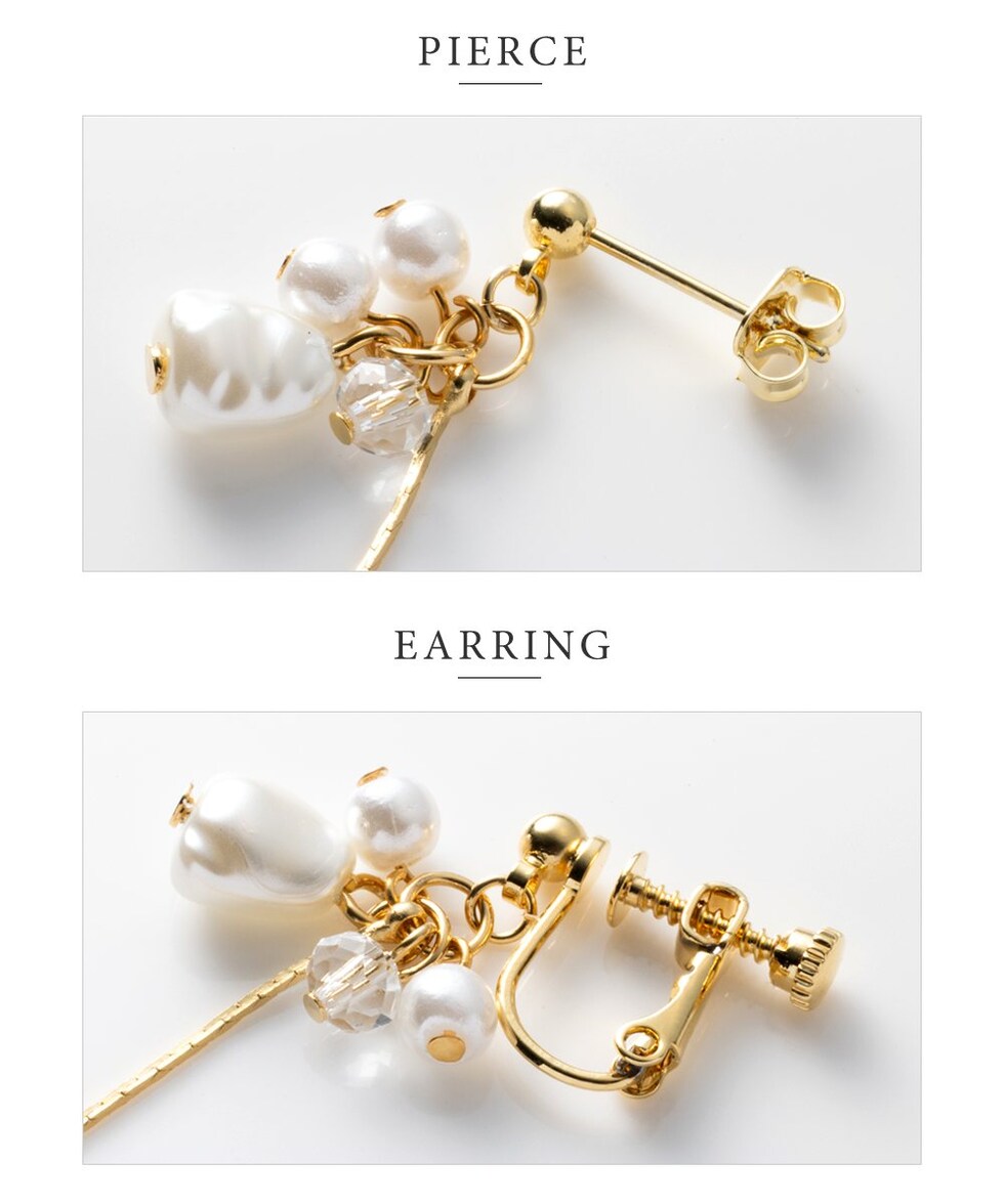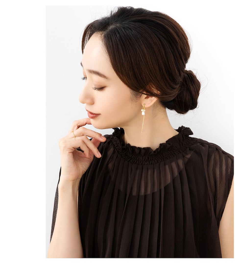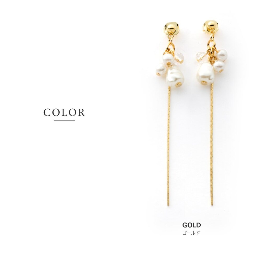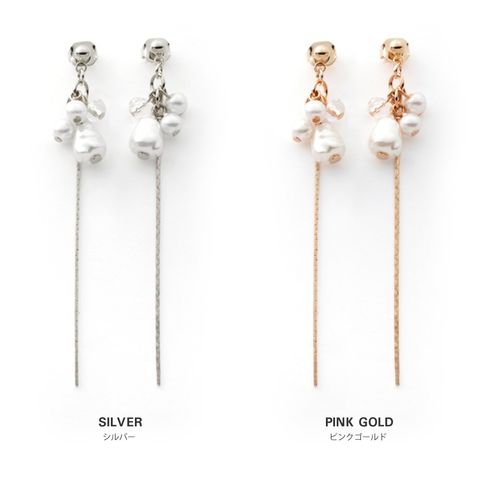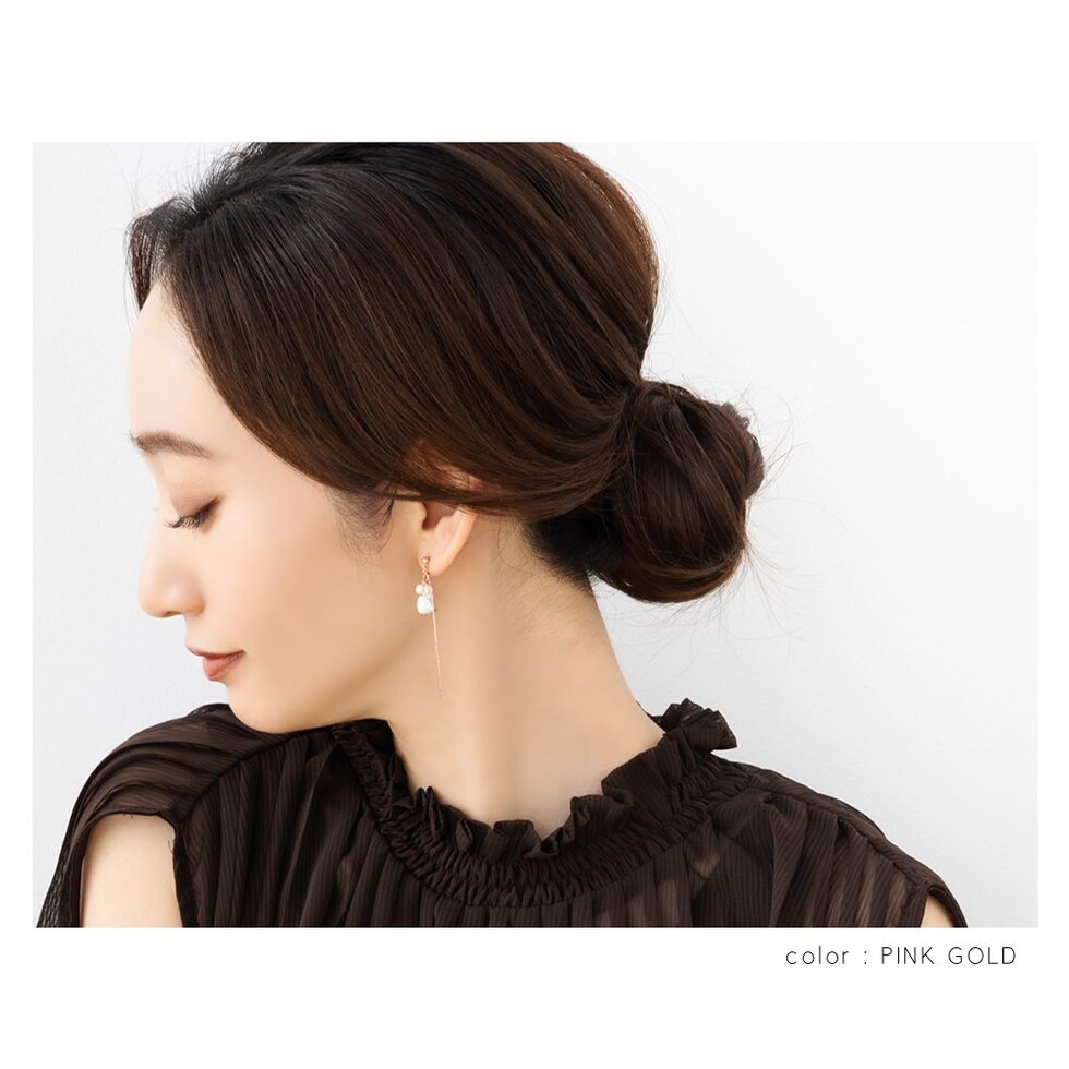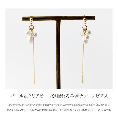 3つのパールとクリアビーズが揺れる華奢チェーンピアス/イヤリング。チラチラと揺れるパール&ビーズとしなやかに艶めくベネチアンチェーンが大人の女性の耳元にぴったり◎どんなスタイルにも合うデイリーアイテムです。