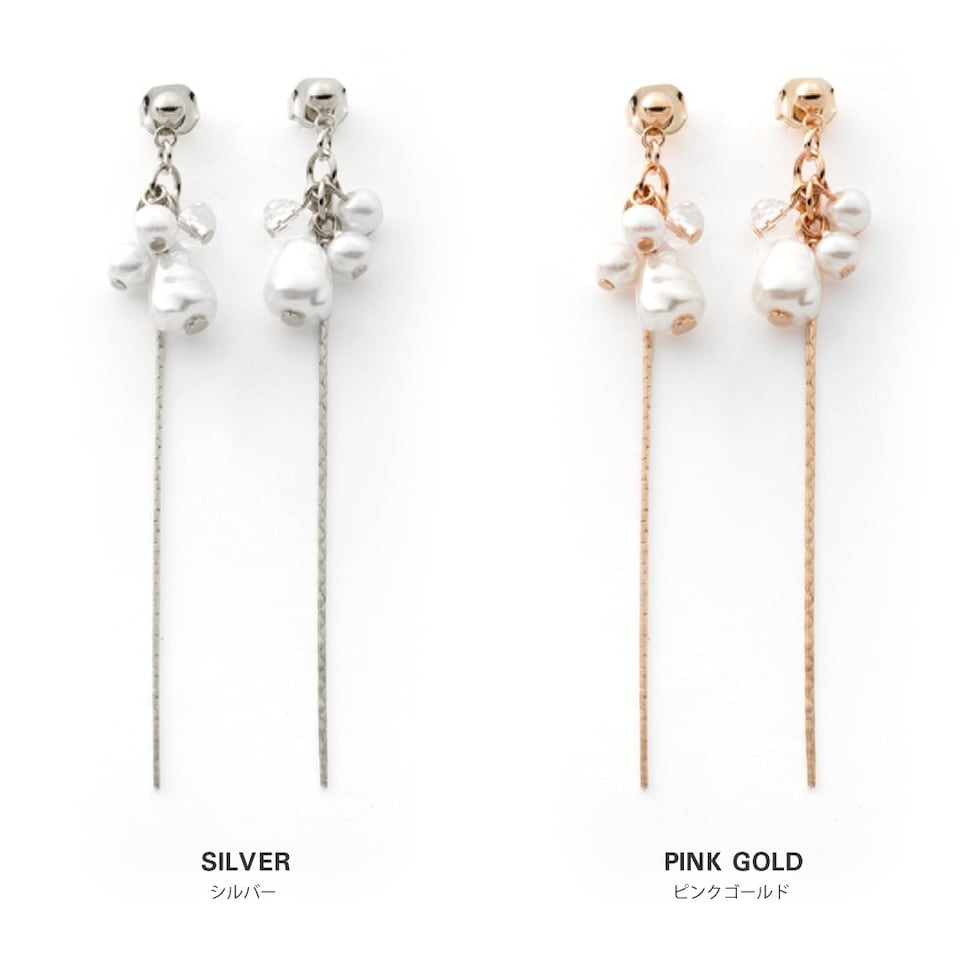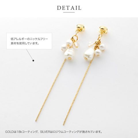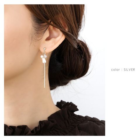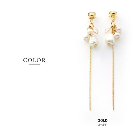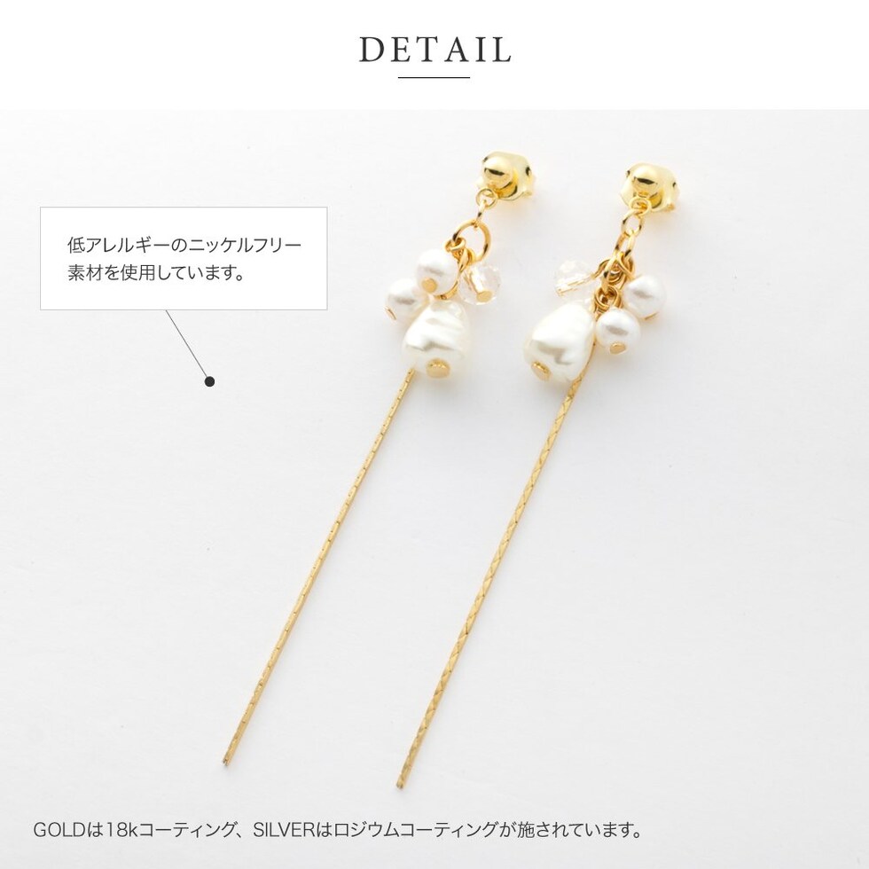 ピアス イヤリング 金属アレルギー ニッケルフリー レディース 揺れる ネジ式 チェーン ロング パール バロックパール風 cream dot ゆうパケット [シルバー_ピアス]