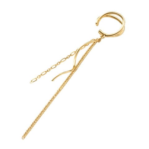 緩やかなメタルウェーブラインと2種類の華奢なロングチェーンの片耳用イヤーカフ。すっきりとした縦長シルエットが大人っぽい印象で、洗練されたスタイルを演出してくれます。錆びにくく傷に強いステンレス製で、長時間の着用も安心の低アレルギー素材です。