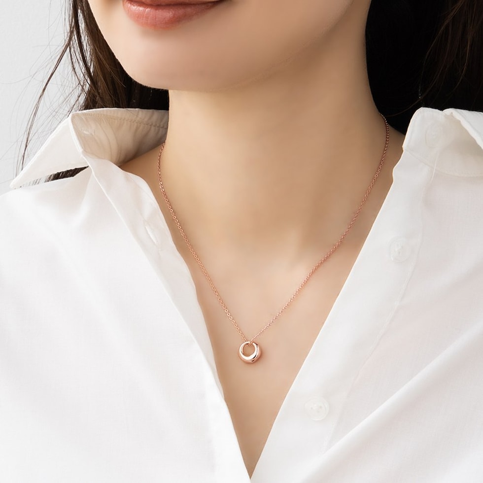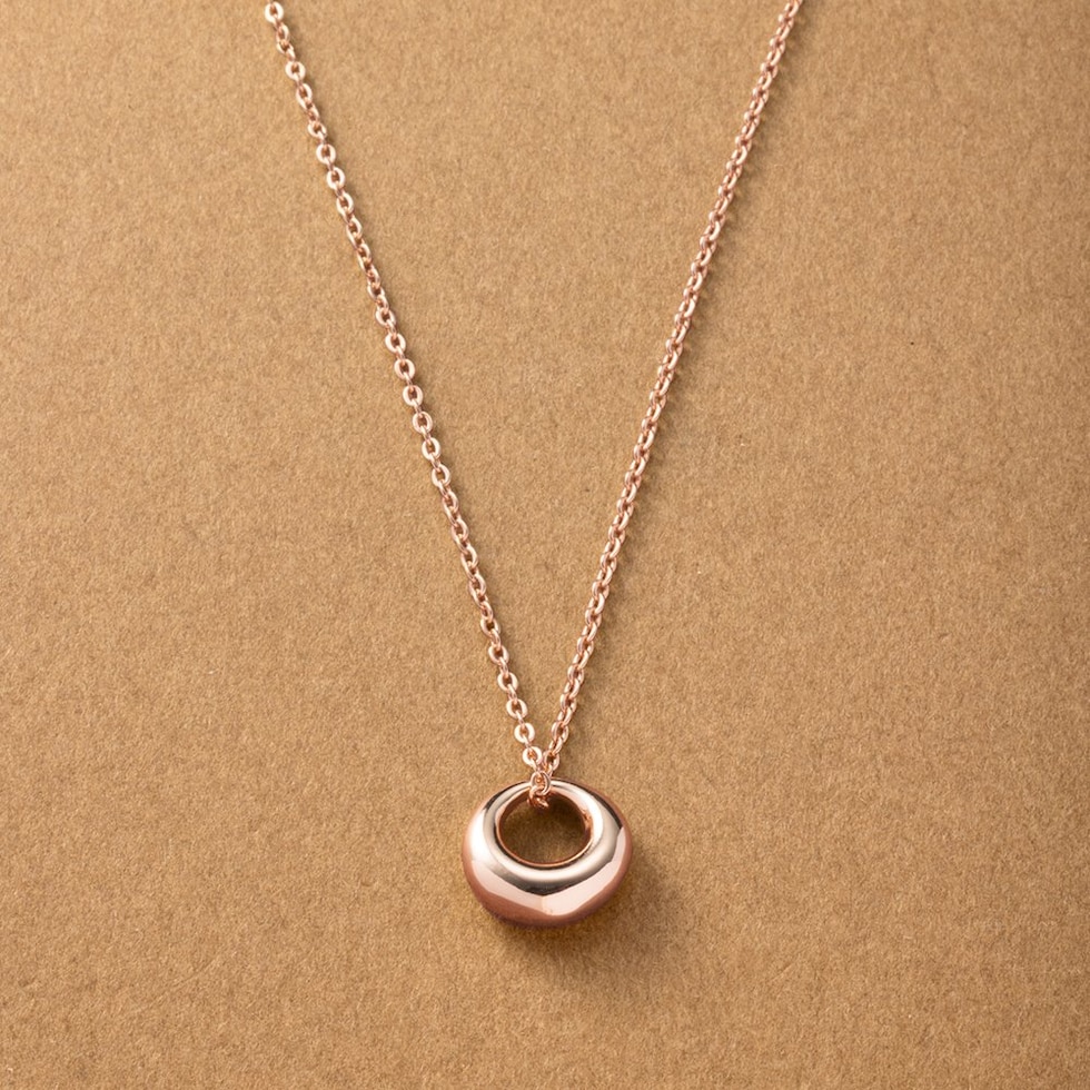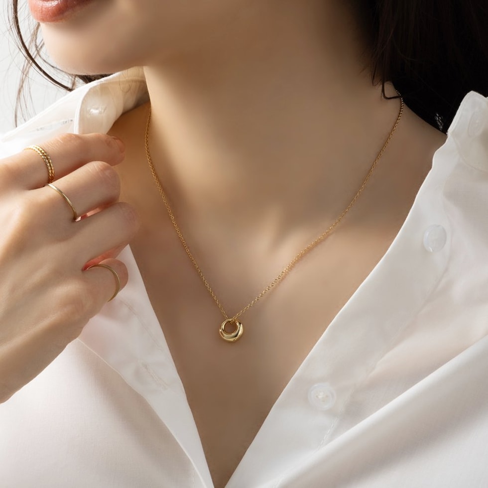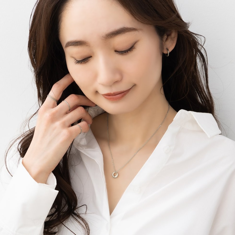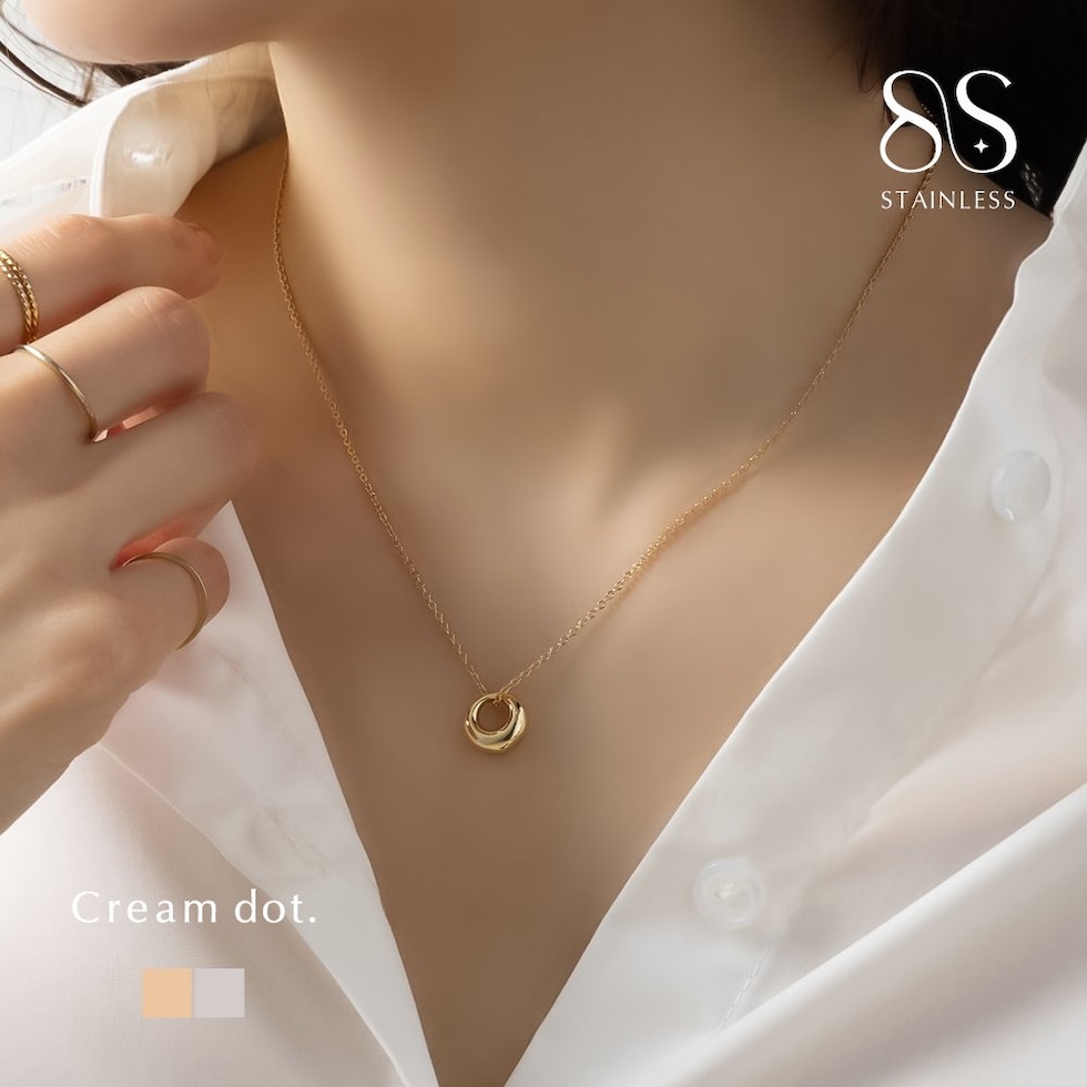 程よい存在感のオープンサークルのステンレス製ネックレス。ぷっくりとした艶めくフォルムと小さなサークルリングが女性らしさを引き立てます。錆びにくく傷に強いステンレス製でデイリーに活躍間違いナシのアイテムです。