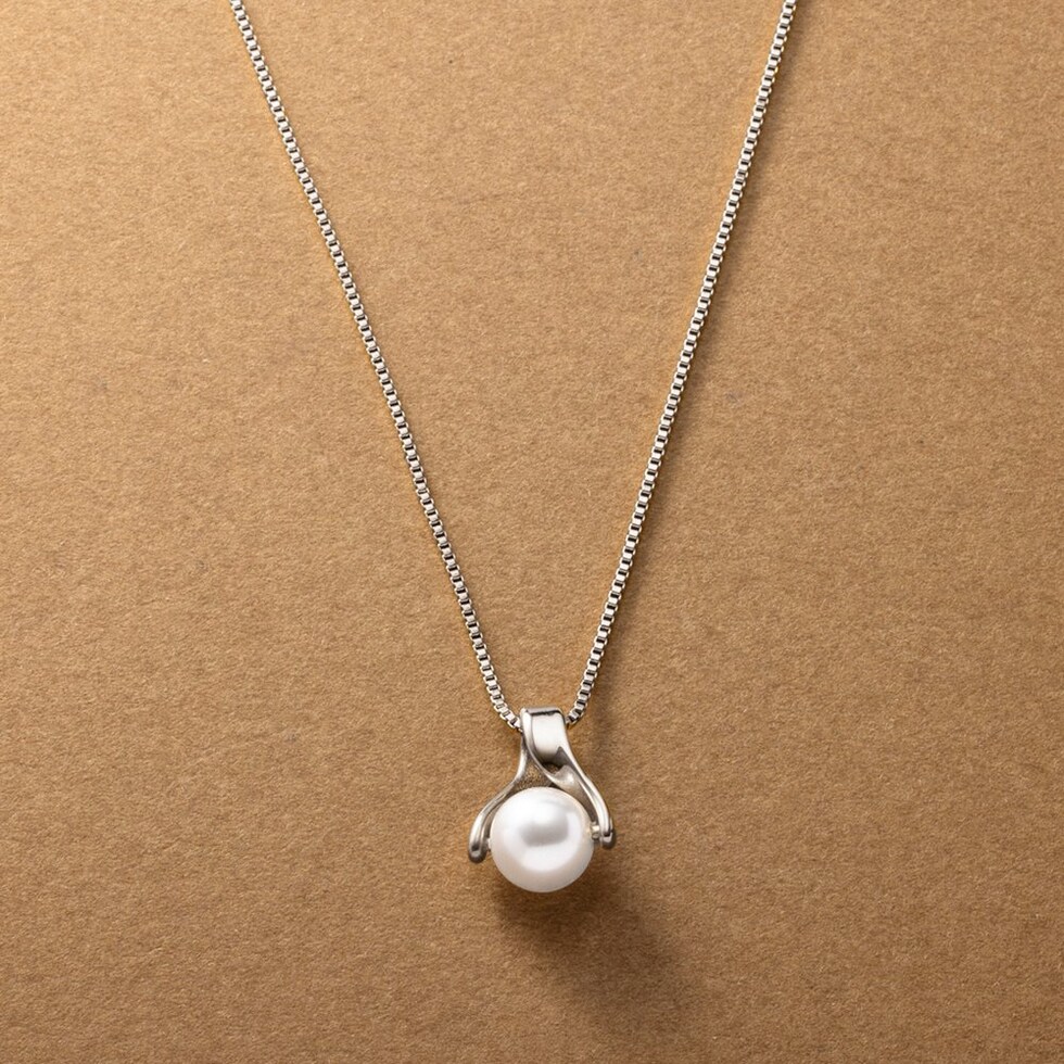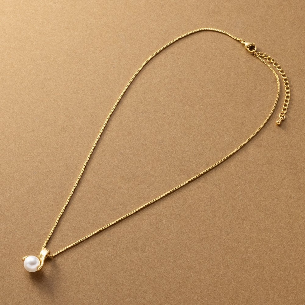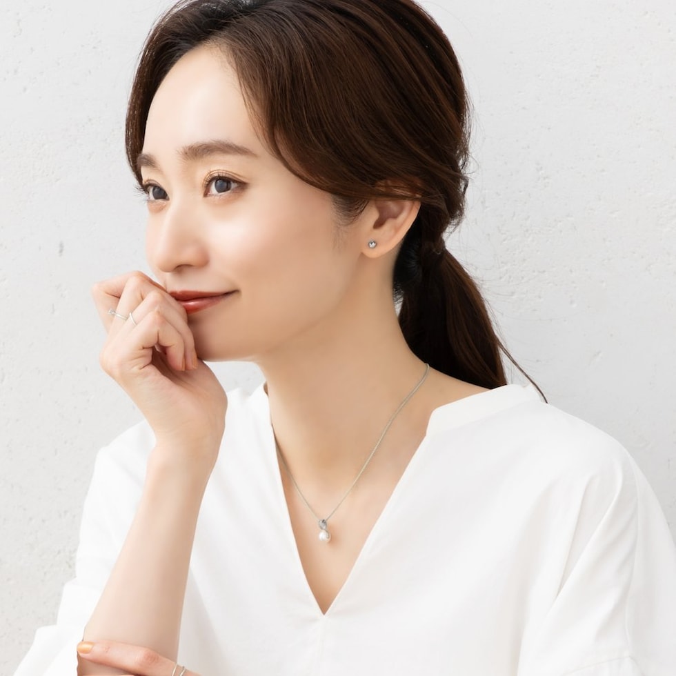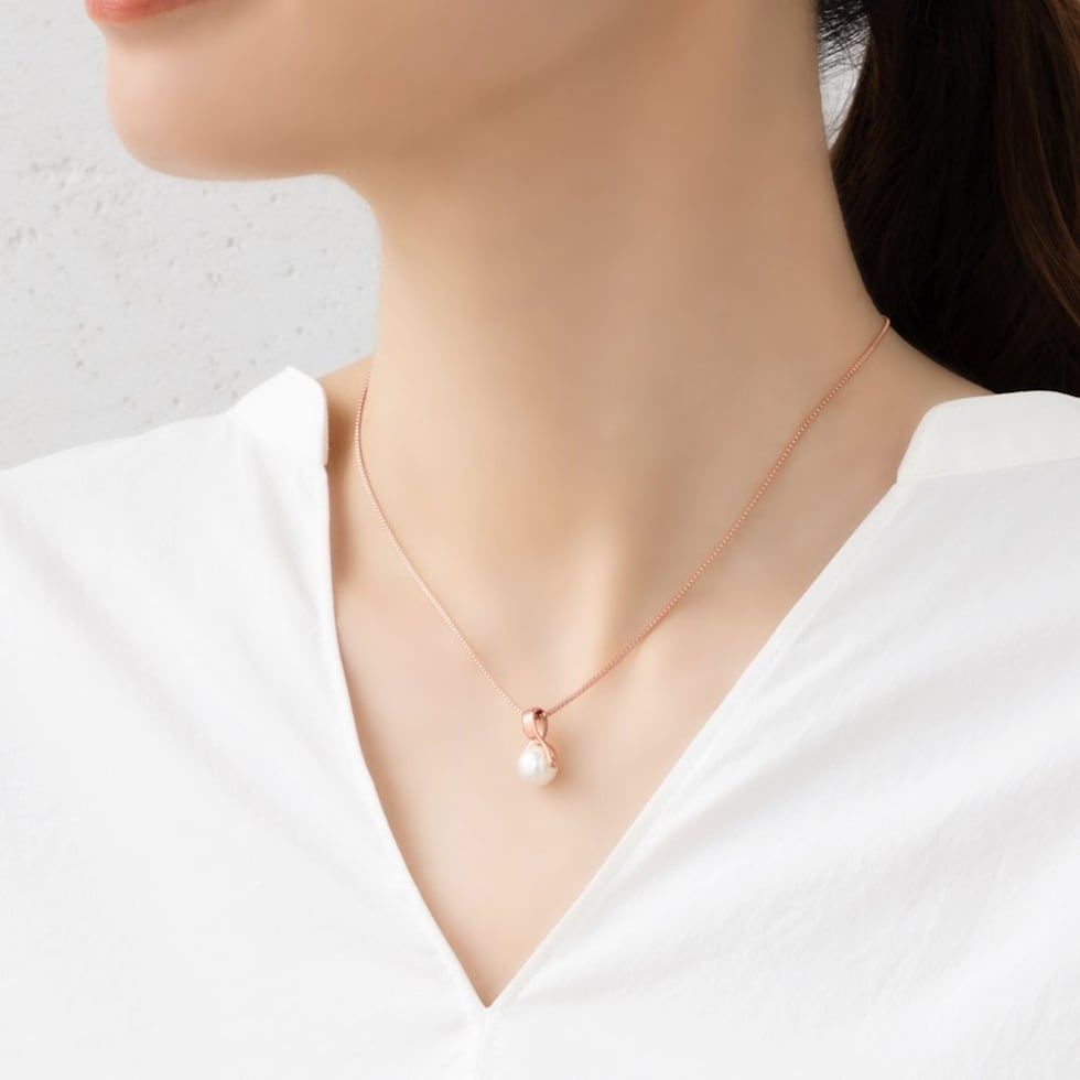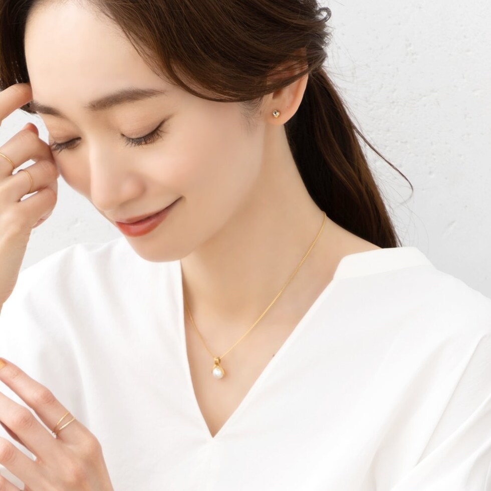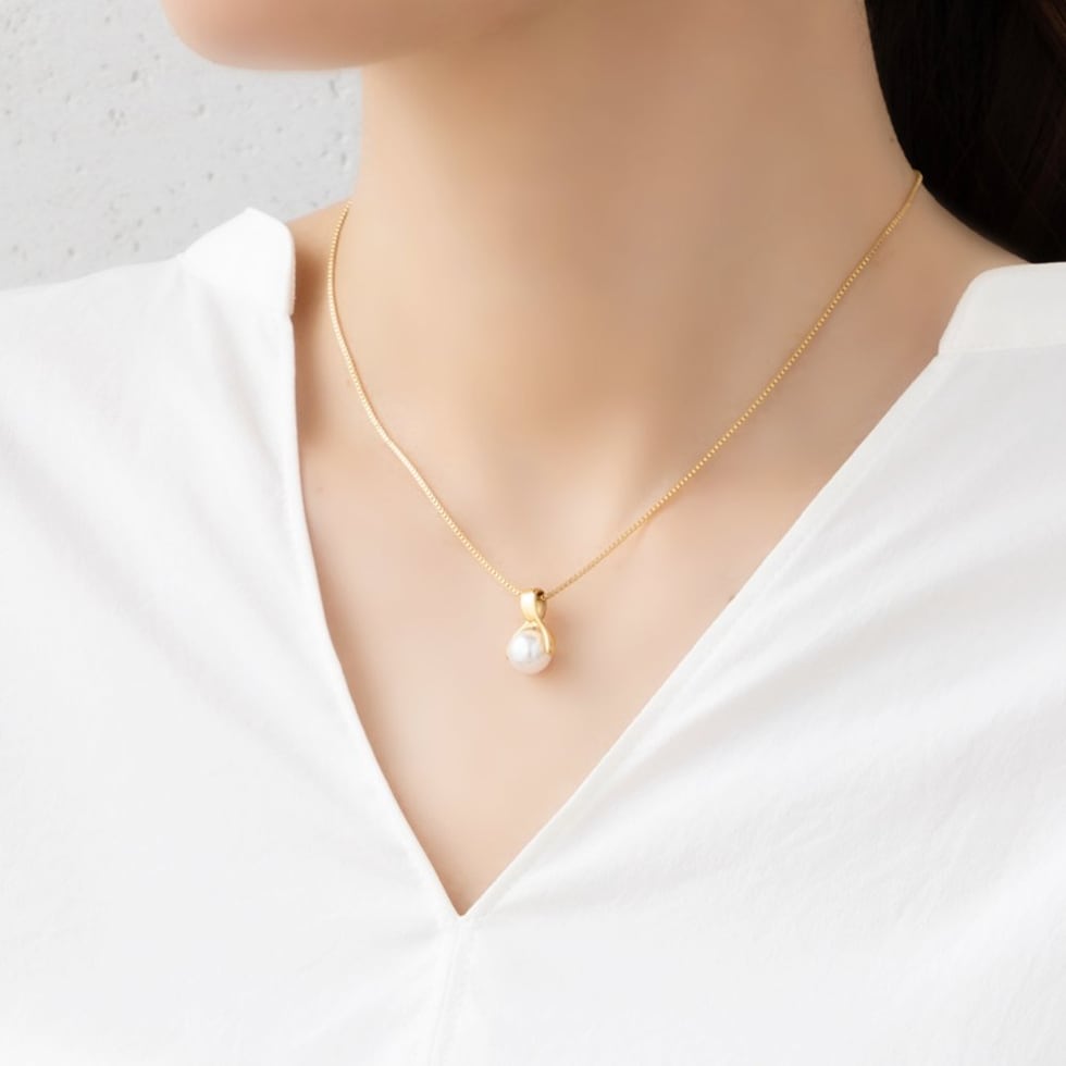 パールに沿うメタルのひねりラインがキレイ見え抜群のネックレス。どの角度から見ても美しいトップモチーフがエレガントな雰囲気で、いつものコーデを格上げしてくれます。錆びにくいステンレス製でデイリーに活躍しそう。