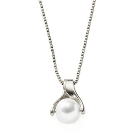 パールに沿うメタルのひねりラインがキレイ見え抜群のネックレス。どの角度から見ても美しいトップモチーフがエレガントな雰囲気で、いつものコーデを格上げしてくれます。錆びにくいステンレス製でデイリーに活躍しそう。