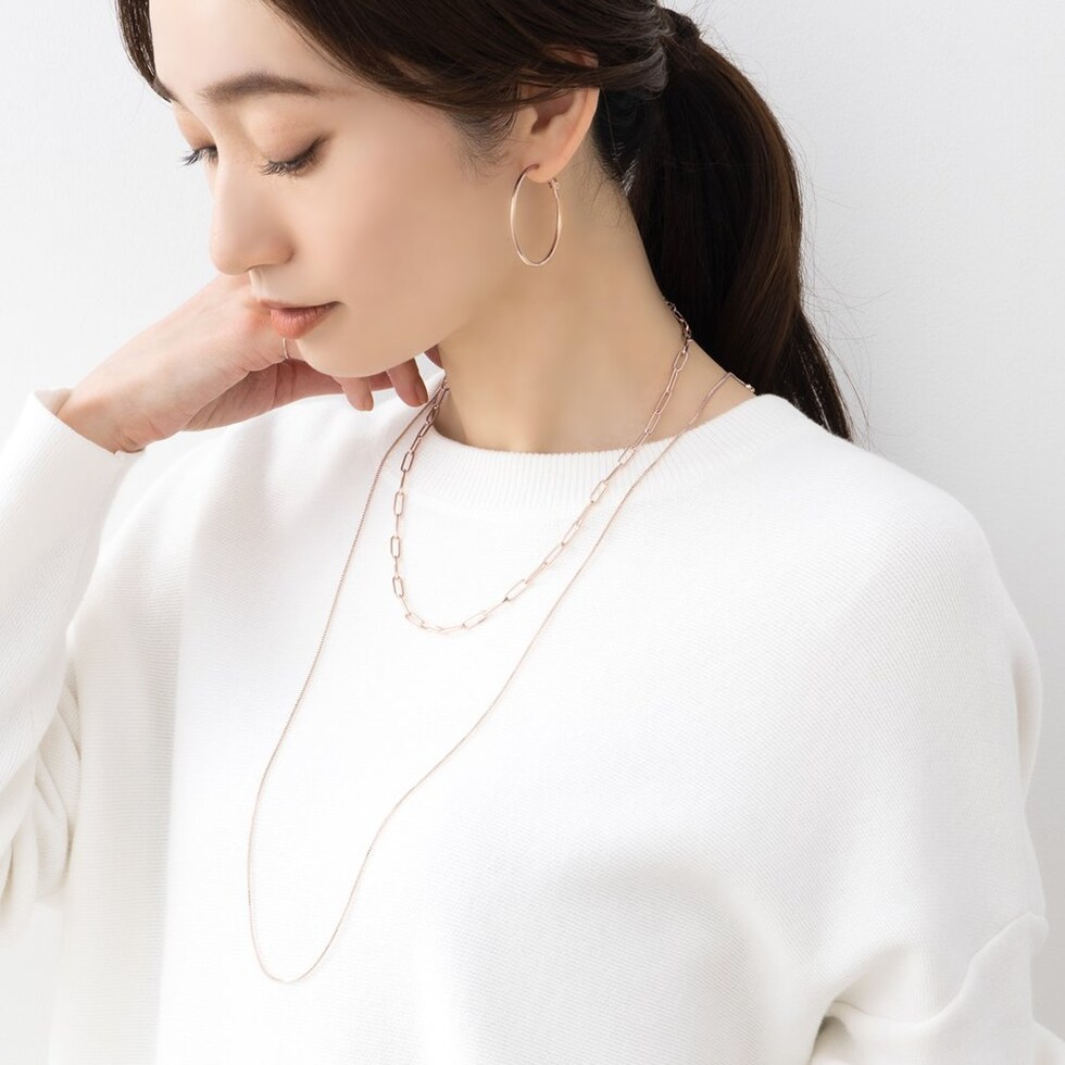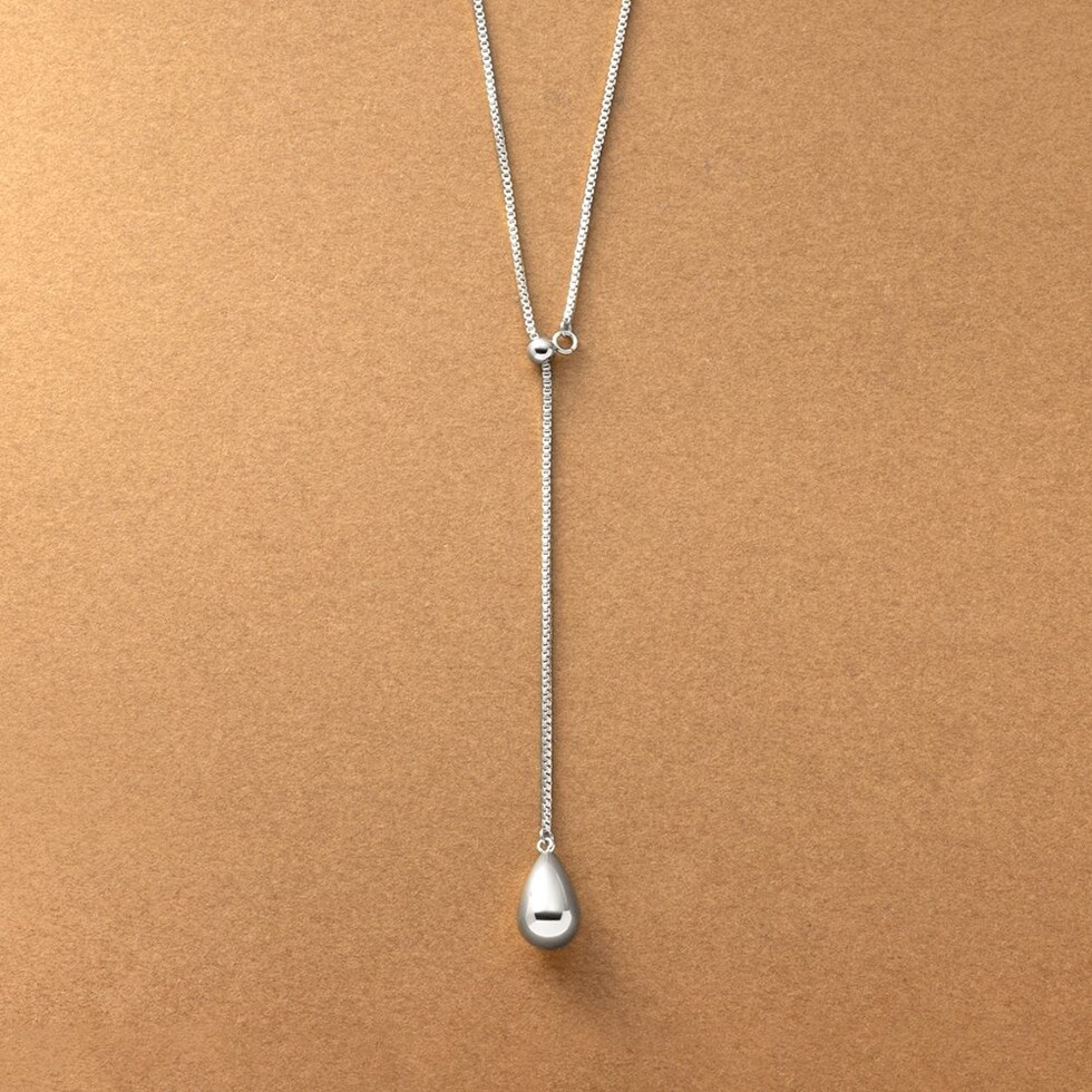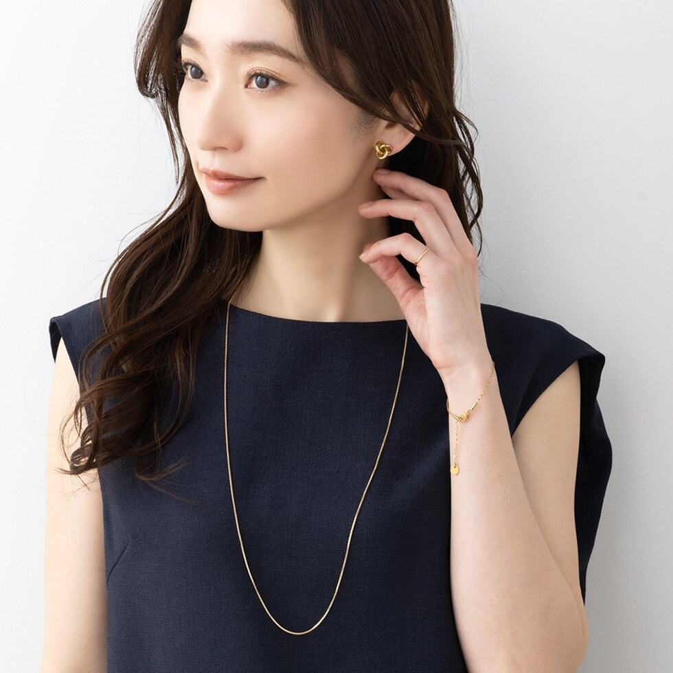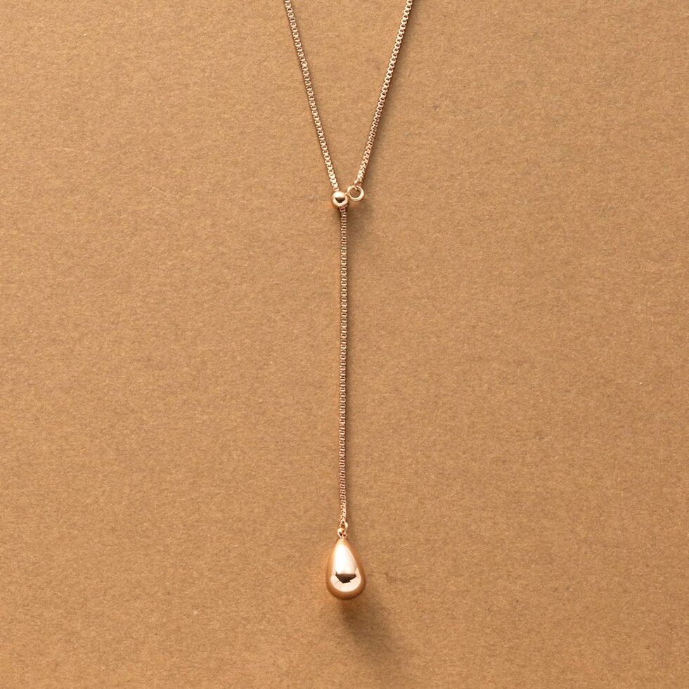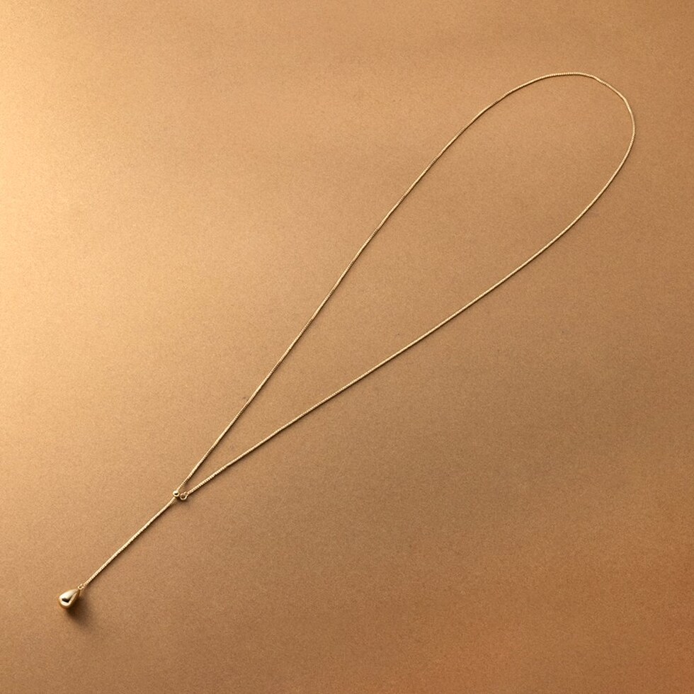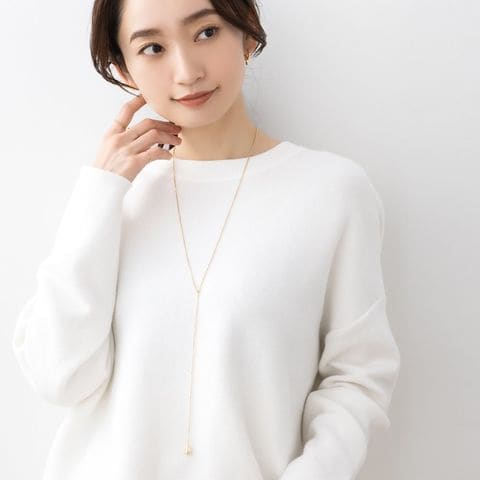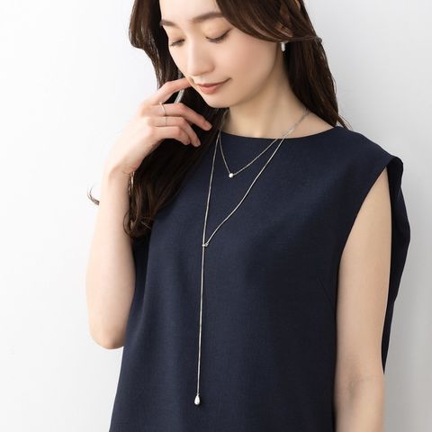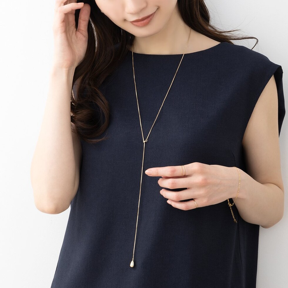 メタルドロップモチーフが揺れるフリーアジャスターのY字ロングネックレス。中央のスライドパーツでY字部分を自分好みの長さに無段階で調整が可能。長さを変えるだけで印象も変わるので、様々なスタイルでおしゃれが楽しめます♪モチーフを後ろ側にして、シンプルなネックレスとして使用しても◎肌馴染みもよく錆びにくいステンレス製だからデイリー使いにぴったりの一品です。
