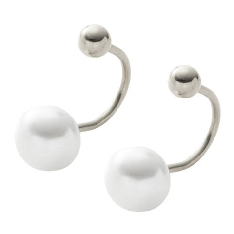 上品に艶めくパールとスフィアを組み合わせたバックキャッチピアス。キャッチを前にしても使えるリバーシブルなひと品。シンプルで飽きの来ないデザインと錆びにくいステンレス製でデイリー使いにぴったりなアイテムです。
