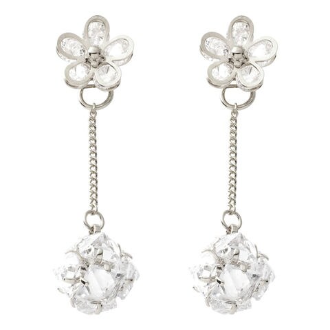 ピアス 金属アレルギー ニッケルフリー レディース バックキャッチ 2way フラワー 揺れる パヴェ ビジュー 予備キャッチ ノーマルキャッチ cream dot ゆうパケット [シルバー_ピアス]