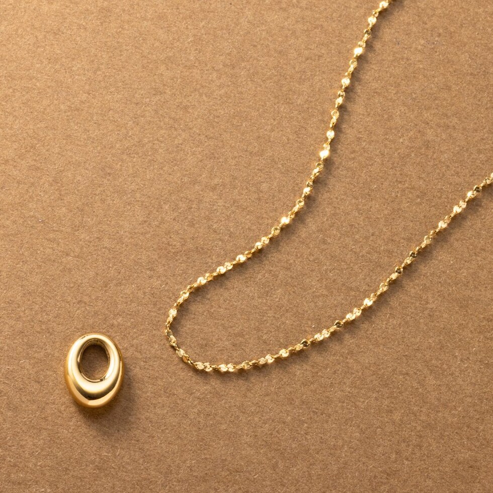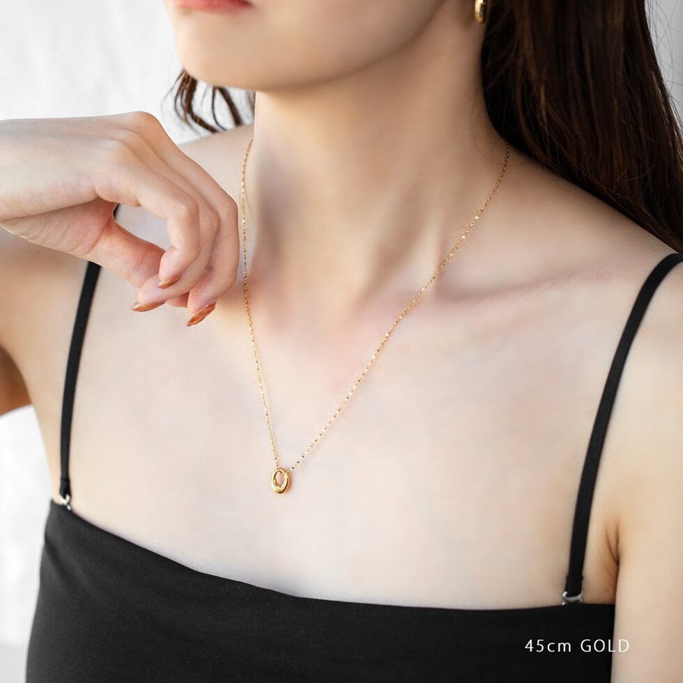 ぷっくりとしたオーバルモチーフと光を受けて煌めくツイストチェーンのネックレス。スタイリングに合わせやすい40cm/45cmの2サイズをご用意しました。モチーフを外して華奢なスキンジュエリーとしても使える2WAY仕様◎肌馴染みもよく錆びにくいステンレス製だからデイリー使いにぴったりの一品です。