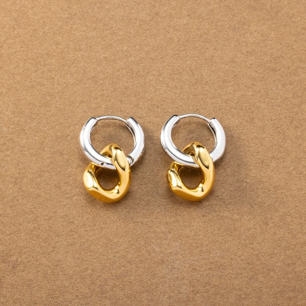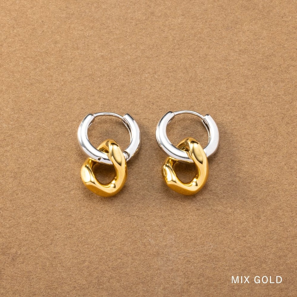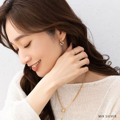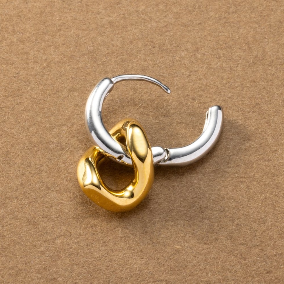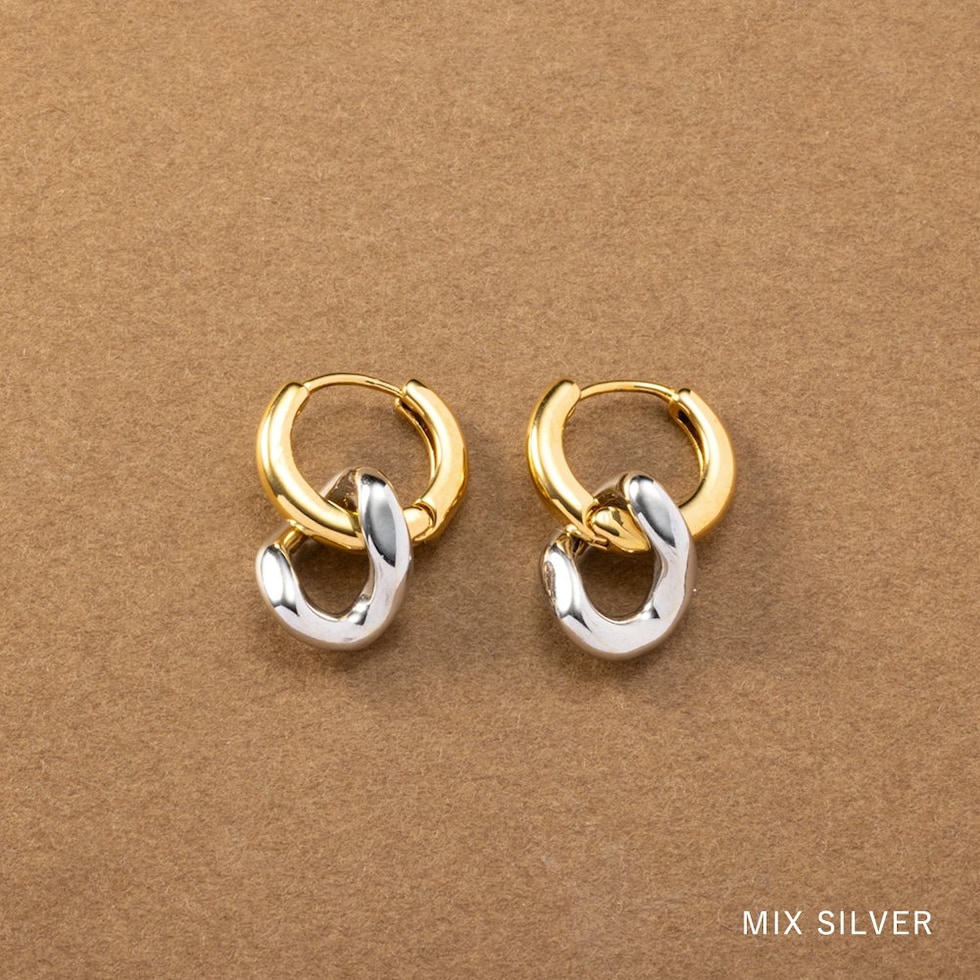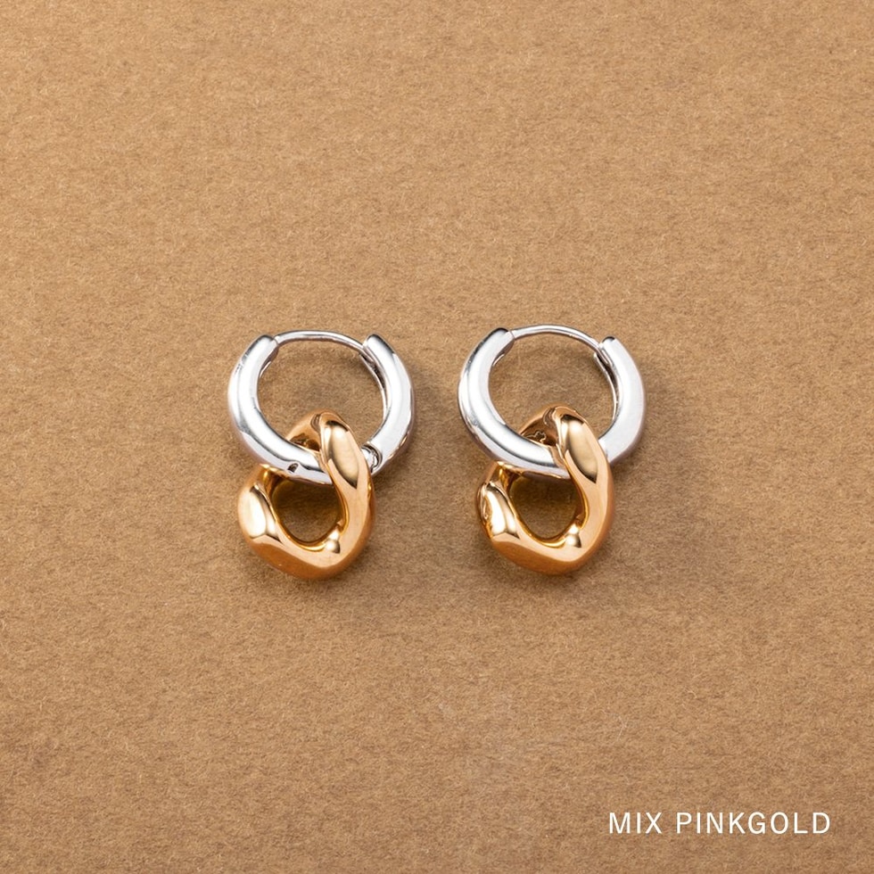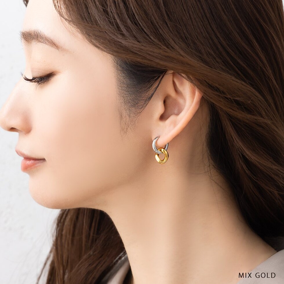 小ぶりなチェーンとMIXカラーのフープピアス。モードな雰囲気とトレンドのMIXカラーがコーデを大人な雰囲気に格上げしてくれるひと品◎モチーフを取り外して使える2way仕様でコスパ抜群なアイテムです。