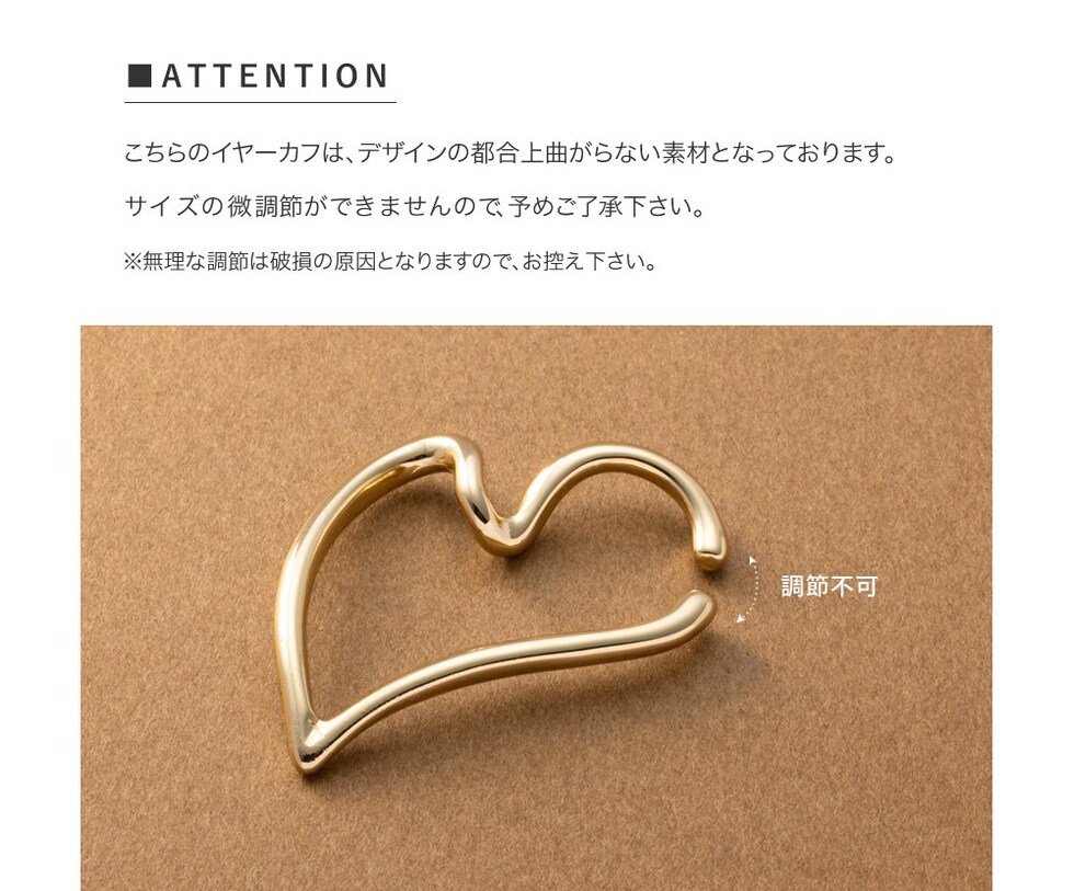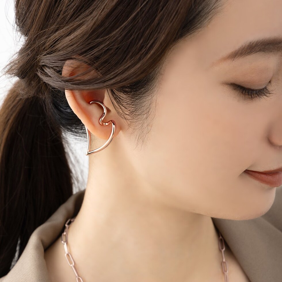 ほんのりとカーブしたラインが個性的でニュアンスたっぷりなハートモチーフの片耳用イヤーカフ。さりげなくハートに見えるデザインがレディライクな“抜け感”をプラスしてくれます。錆びにくく傷に強いステンレス製で、デイリーに活躍◎長時間の着用も安心の低アレルギー素材です。