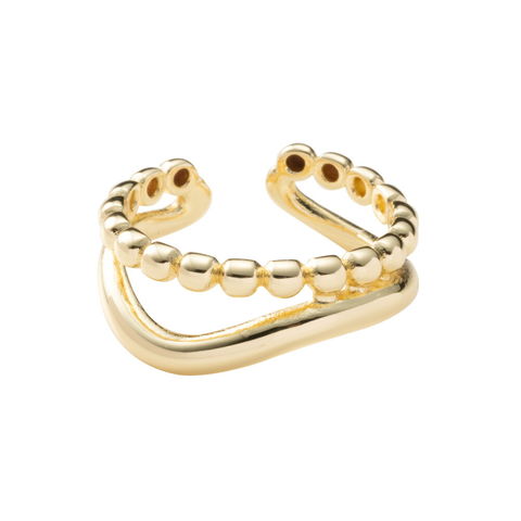リング 指輪 ステンレス 金属アレルギー サージカルステンレス レディース つけっぱなし オープンリング メタルボール ウェーブ レイヤード風 2連 変形 cream dot ゆうパケット [ゴールド_13号]