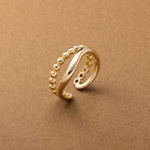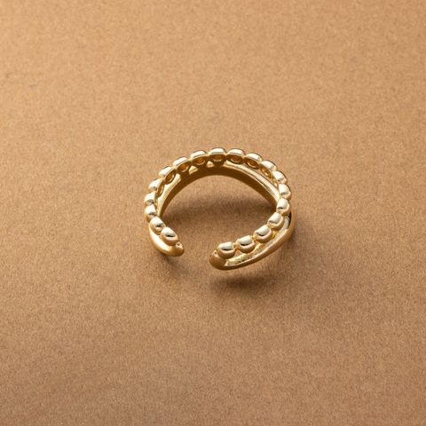 リング 指輪 ステンレス 金属アレルギー サージカルステンレス レディース つけっぱなし オープンリング メタルボール ウェーブ レイヤード風 2連 変形 cream dot ゆうパケット [ゴールド_15号]