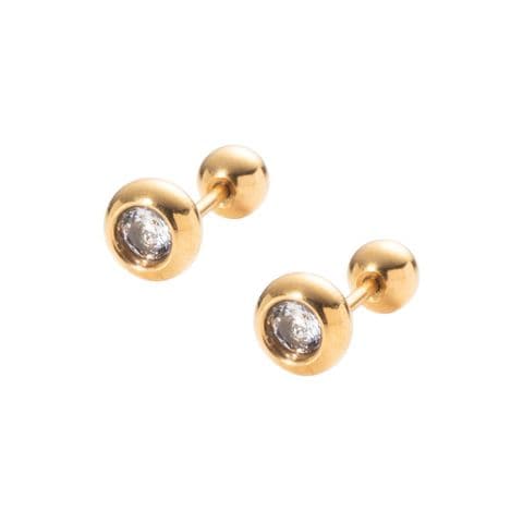 ぷっくりとしたメタルフレームでビジューを包んだネジロック式ピアス。MとLの2サイズをご用意しました。キャッチは後ろから見ても可愛いスフィアモチーフで、ネジのようにしっかりと留められるから落ちる心配もないのが◎錆びにくく傷に強いステンレス製で、長時間の着用も安心の低アレルギー素材です。