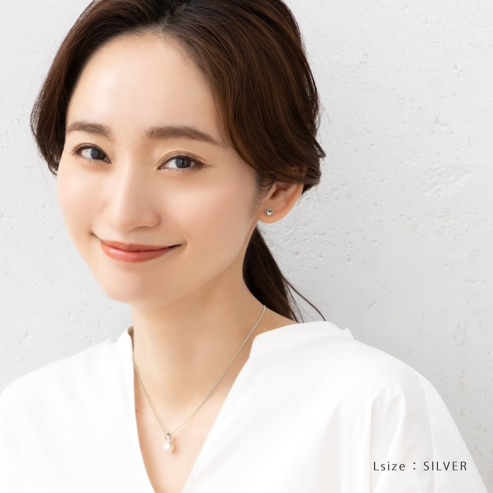 ピアス ステンレス 金属アレルギー サージカルステンレス レディース つけっぱなし ネジロック式 ビジュー メタル スフィア ぷっくり 2サイズ 両耳用 cream dot ゆうパケット [シルバー_Lサイズ]