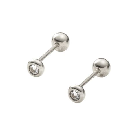 ぷっくりとしたメタルフレームでビジューを包んだネジロック式ピアス。MとLの2サイズをご用意しました。キャッチは後ろから見ても可愛いスフィアモチーフで、ネジのようにしっかりと留められるから落ちる心配もないのが◎錆びにくく傷に強いステンレス製で、長時間の着用も安心の低アレルギー素材です。