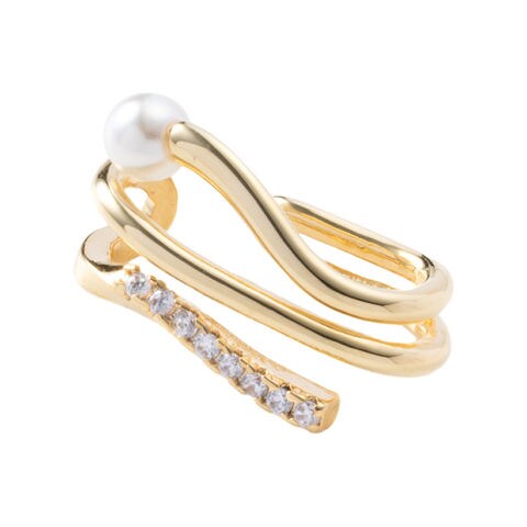 パールと小粒ビジューが耳元を品よくアップデートする片耳用イヤーカフ。流れるようなレイヤード風のデザインが女性らしさ抜群◎主張しすぎず周りと差のつく、大人っぽい技ありアイテムです。