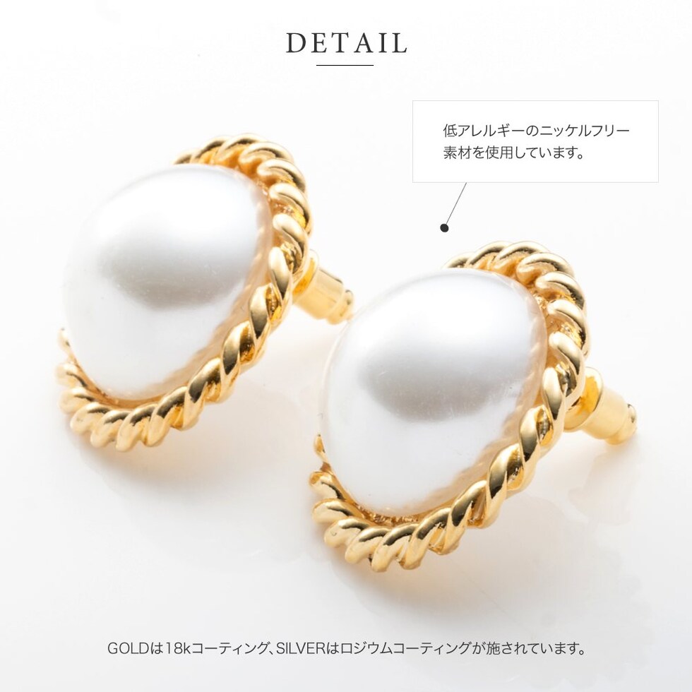 ピアス イヤリング 金属アレルギー ニッケルフリー レディース パール 一粒パール ビッグパール フレーム 大粒 大きめ 大ぶり 大粒パール cream dot ゆうパケット [シルバー_ピアス]