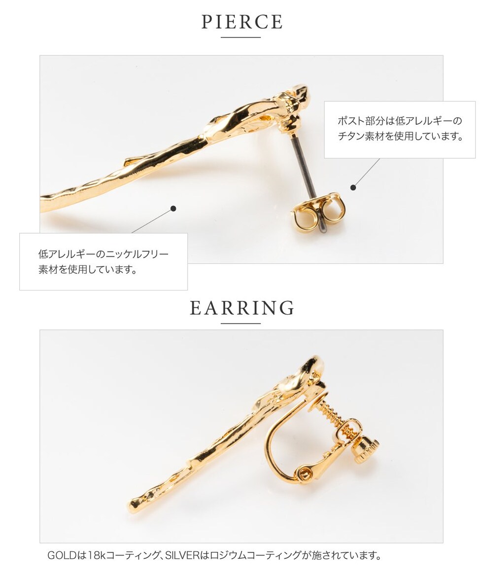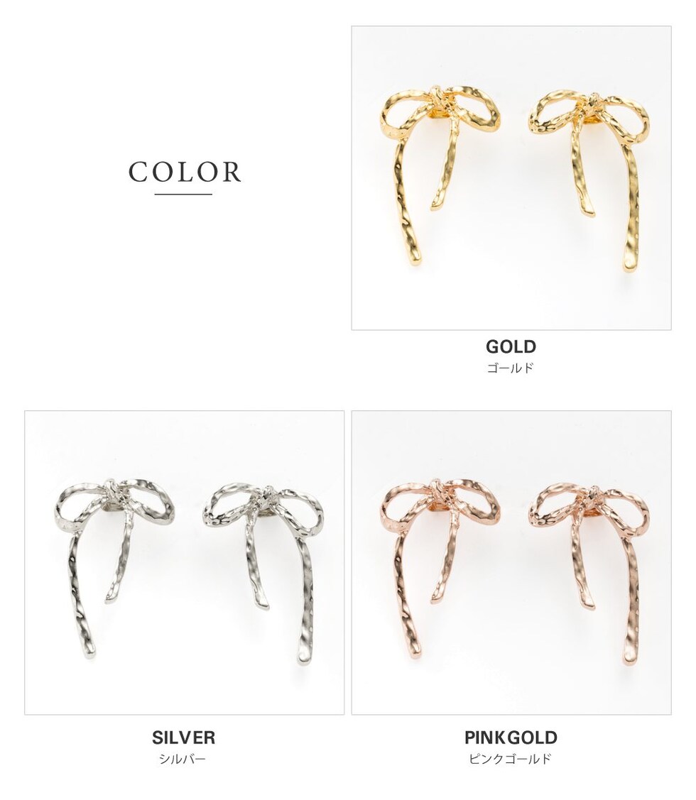 凹凸テクスチャを施したアシンメトリーなリボンモチーフのメタルピアス/イヤリング。個性的なデザインで甘くなりすぎず、大人コーデのワンポイントにぴったりなアイテム。さりげなくトレンドを取り入れて旬顔にチェンジ◎
