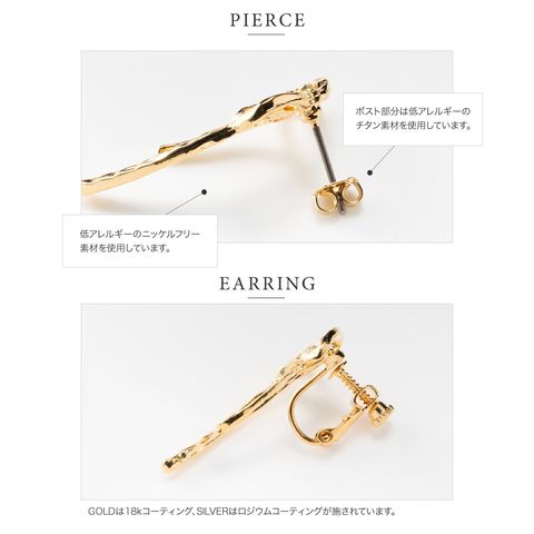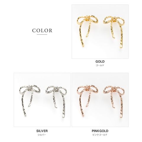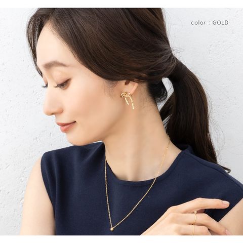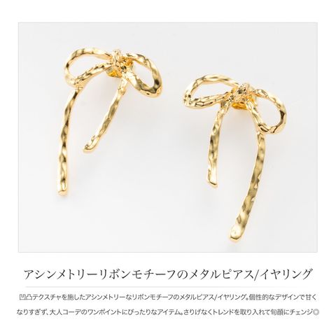 凹凸テクスチャを施したアシンメトリーなリボンモチーフのメタルピアス/イヤリング。個性的なデザインで甘くなりすぎず、大人コーデのワンポイントにぴったりなアイテム。さりげなくトレンドを取り入れて旬顔にチェンジ◎