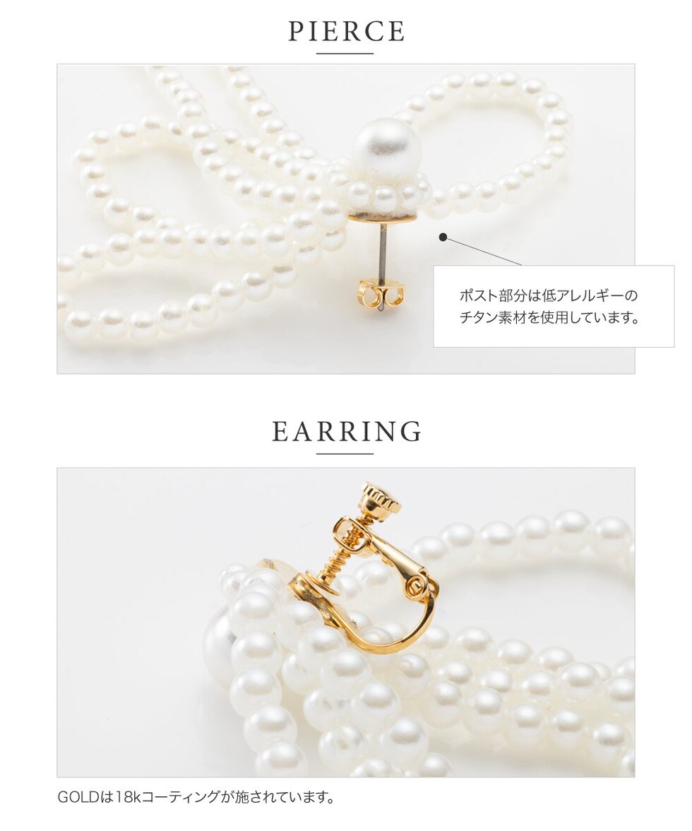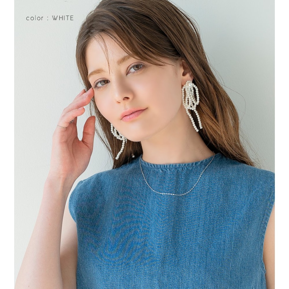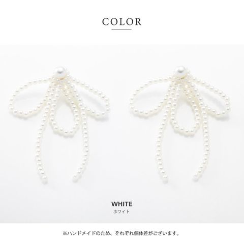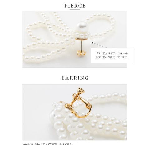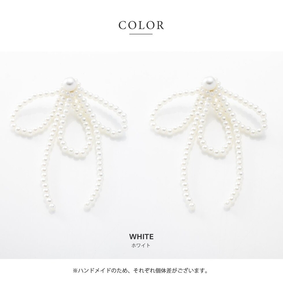 ピアス イヤリング 金属アレルギー ニッケルフリー レディース リボン パール パールリボン リボンモチーフ ボリューム 大ぶり 大きめ 揺れる ホワイト cream dot ゆうパケット [ホワイト_ピアス]