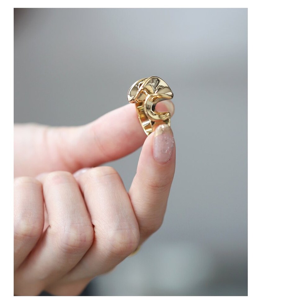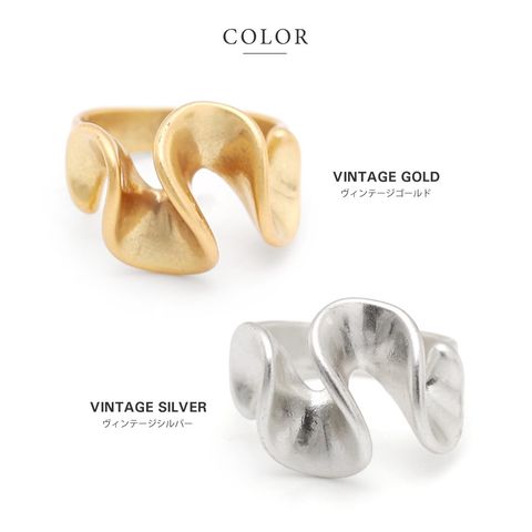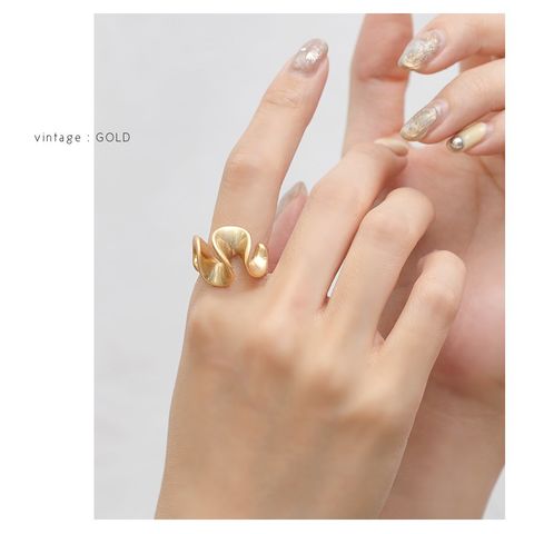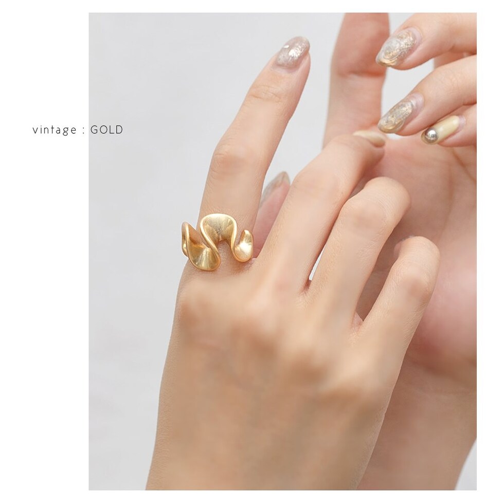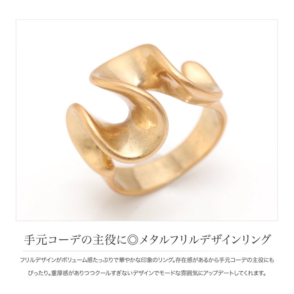 リング 指輪 金属アレルギー ニッケルフリー レディース フリル フリルリング ヴィンテージ調 艶消し マット ボリューム 存在感 変形 cream dot ゆうパケット [ゴールド_13号]