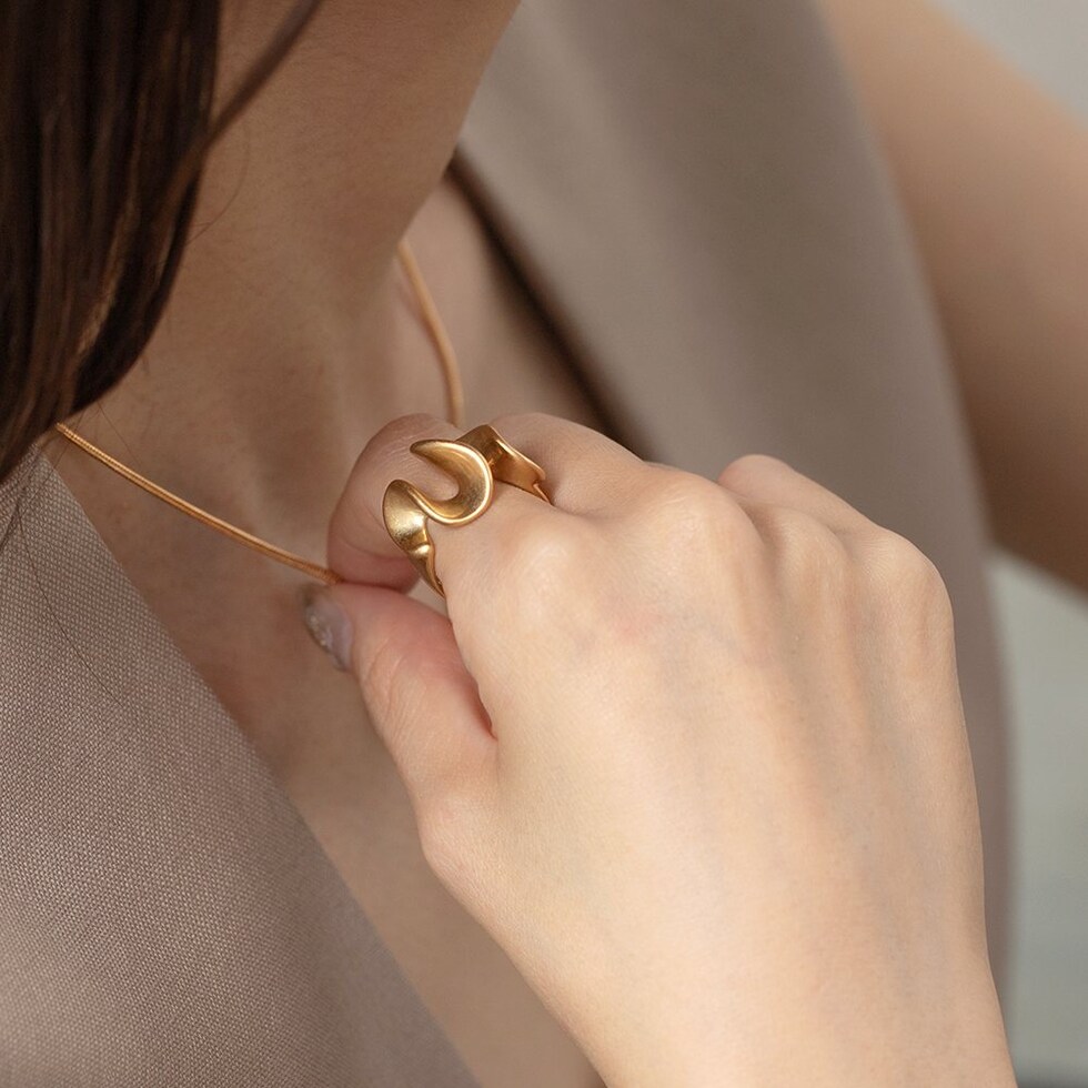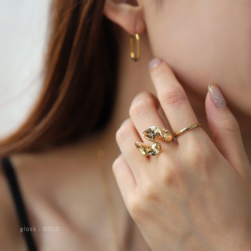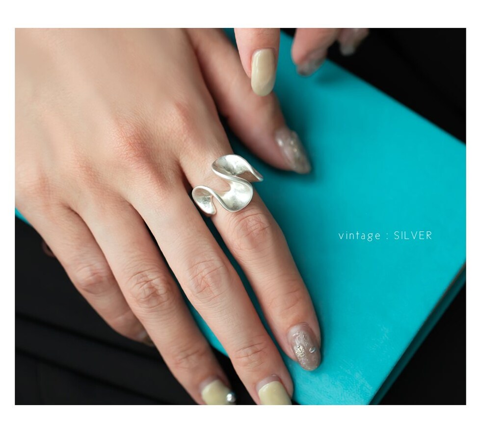 フリルデザインがボリューム感たっぷりで華やかな印象のリング。存在感があるから手元コーデの主役にもぴったり。重厚感がありつつクールすぎないデザインでモードな雰囲気にアップデートしてくれます。