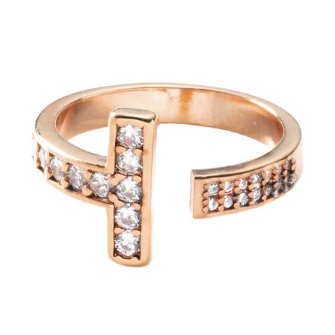 リング 指輪 レディース パール ビジュー キュービックジルコニア パヴェ 2タイプ オープンリング T字 調節可能 cream dot ゆうパケット [B:ピンクゴールド_フリーサイズ]