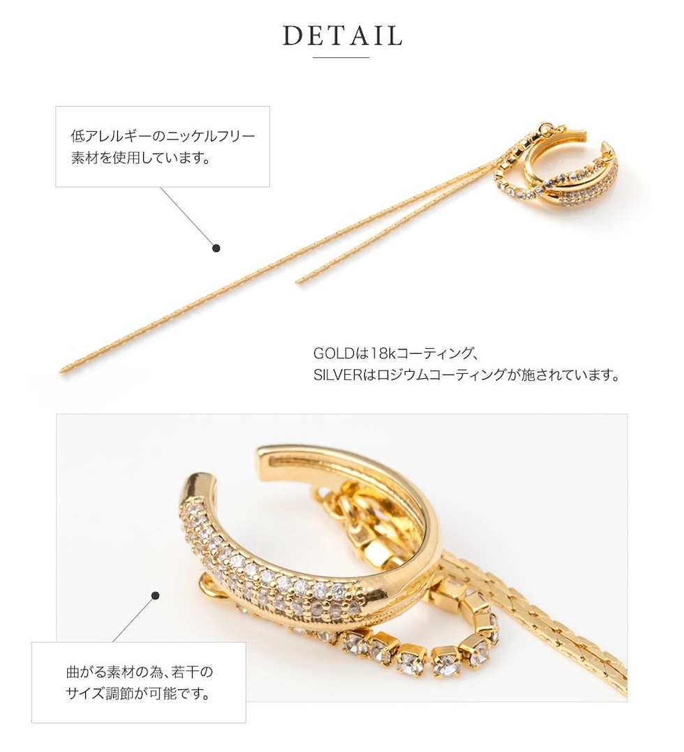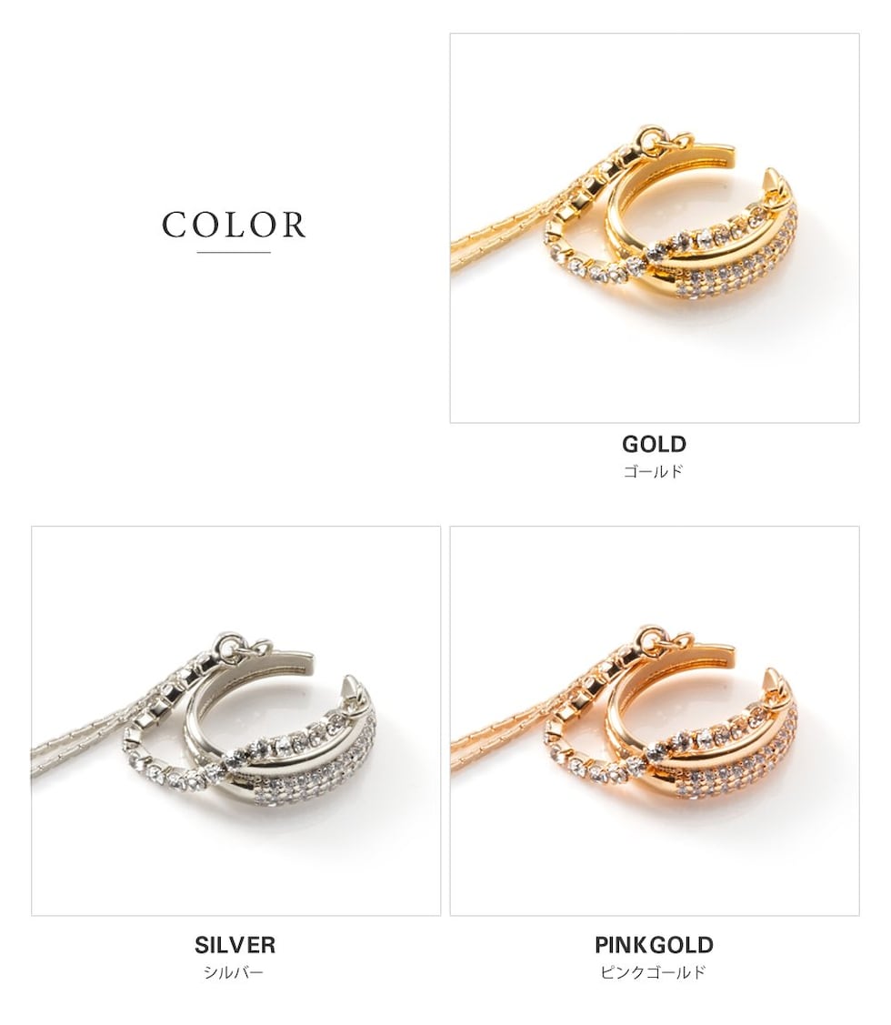 イヤーカフ 金属アレルギー ニッケルフリー レディース イヤーカフ イヤカフ 片耳用 パヴェ ビジュー チェーン ロング 小粒 レイヤード風 揺れる cream dot ゆうパケット [シルバー_フリーサイズ]