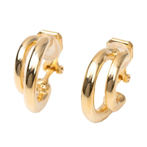 イヤリング ピアス 金属アレルギー ニッケルフリー レディース フープ ダブルライン レイヤード風 2連 シリコンカバー cream dot ゆうパケット [ゴールド_イヤリング]