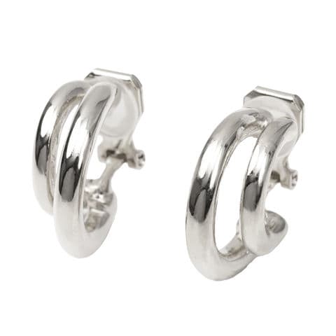 イヤリング ピアス 金属アレルギー ニッケルフリー レディース フープ ダブルライン レイヤード風 2連 シリコンカバー cream dot ゆうパケット [シルバー_イヤリング]