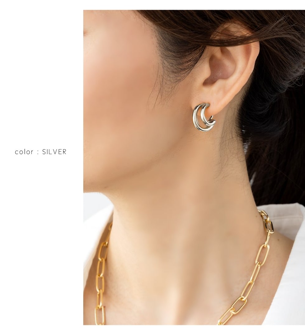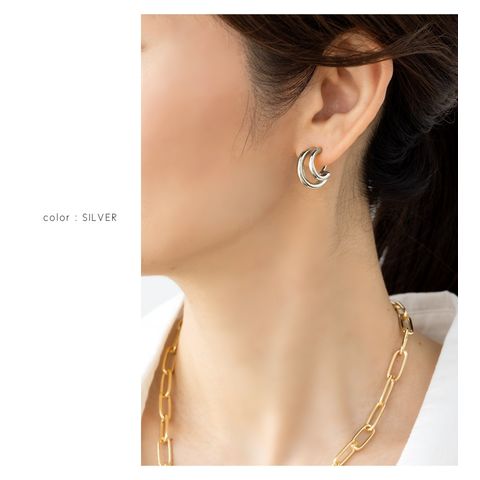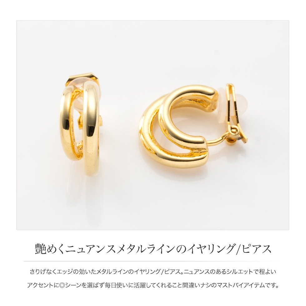 さりげなくエッジの効いたメタルラインのイヤリング/ピアス。ニュアンスのあるシルエットで程よいアクセントに◎シーンを選ばず毎日使いに活躍してくれること間違いナシのマストバイアイテムです。